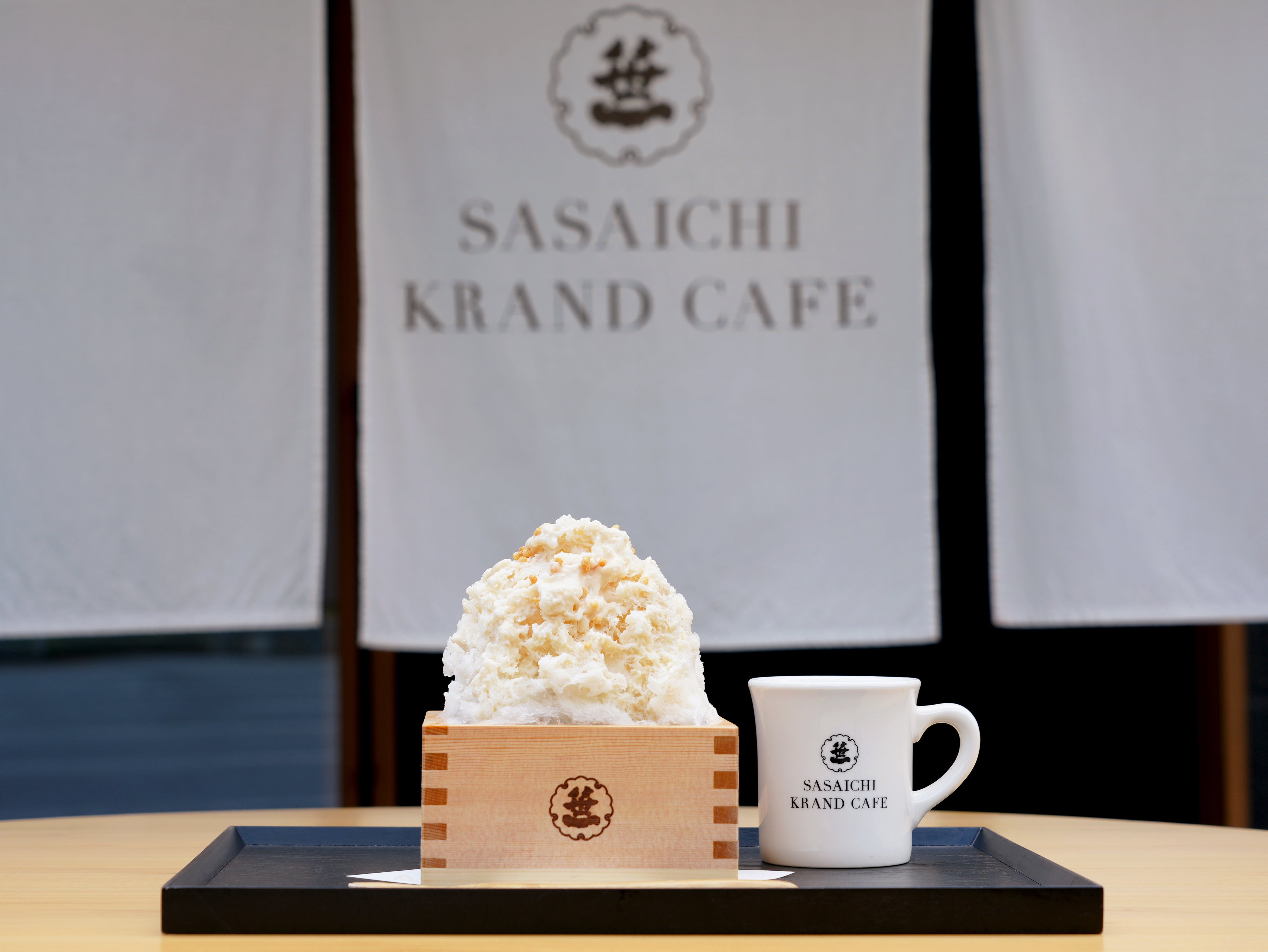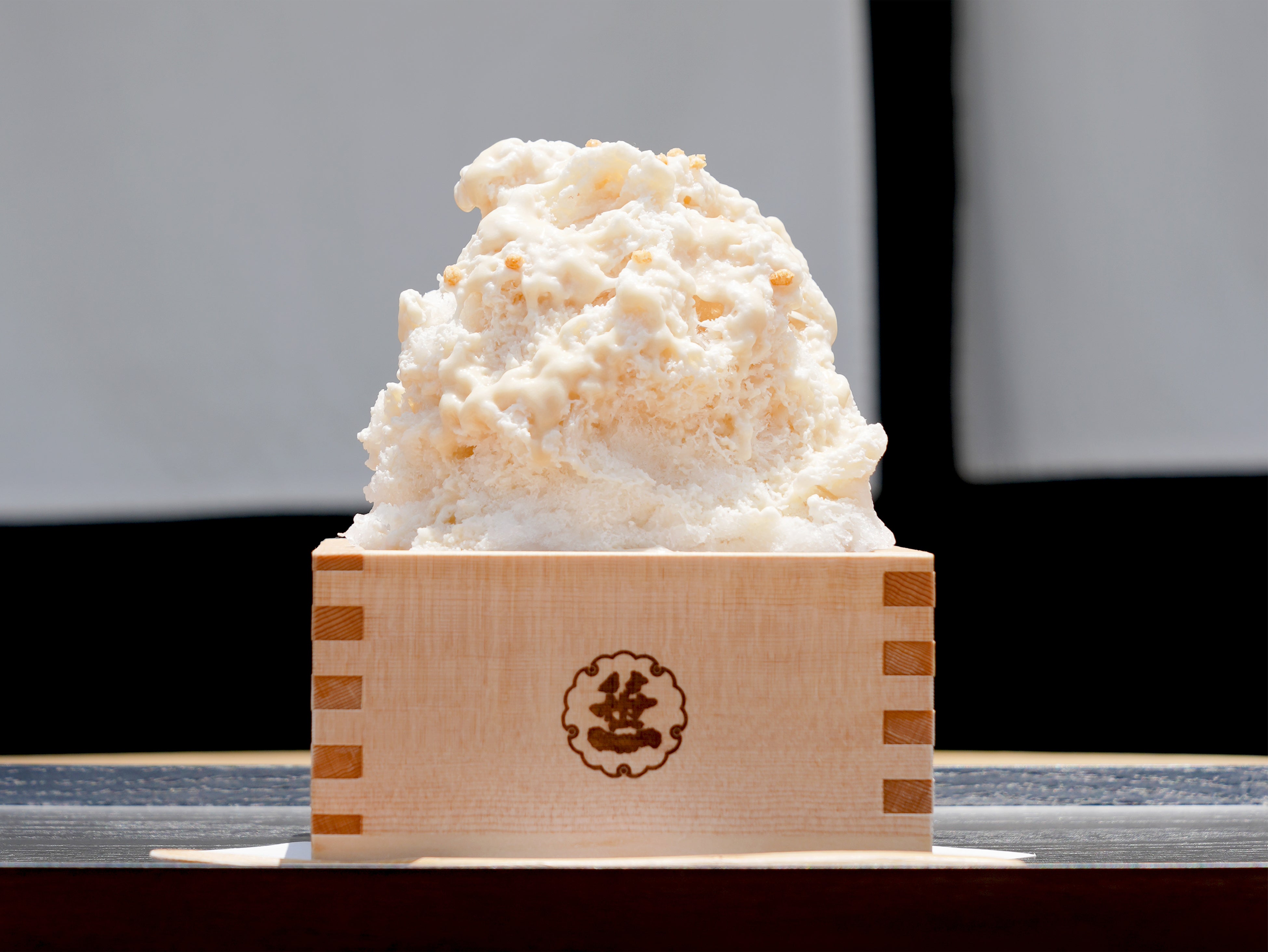 笹一酒造では、1616年の創業当時より富士の天然水を使い日本酒を醸しています。その清らかな仕込み水と同じ水から作られる富士の天然氷を使用し、かき氷にしています。ふわとろのかき氷の食感を最後まで飽きずにお愉しみいただけるよう、氷を削る行程を2段階に分け、途中で酒粕のシロップを染み込ませて丁寧にご提供します。また、酒粕はノンアルコールなので、小さなお子様や、お車でお越しの方もお召し上がりいただけます。