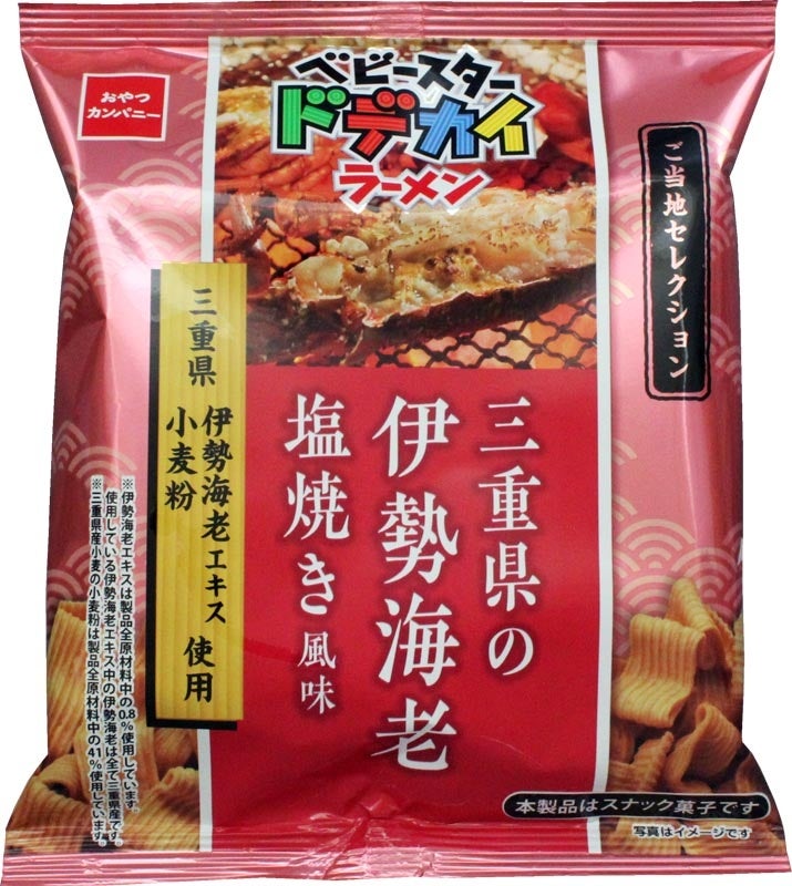 「ベビースタードデカイラーメン(三重県の伊勢海老塩焼き風味)」は、三重県産の小麦粉と三重県産伊勢海老のエキスを使用。伊勢海老の甘みを引き立てる塩味で仕上げ、伊勢海老を焼いた香ばしさとともに香り高い味わいをお楽しみいただけます。