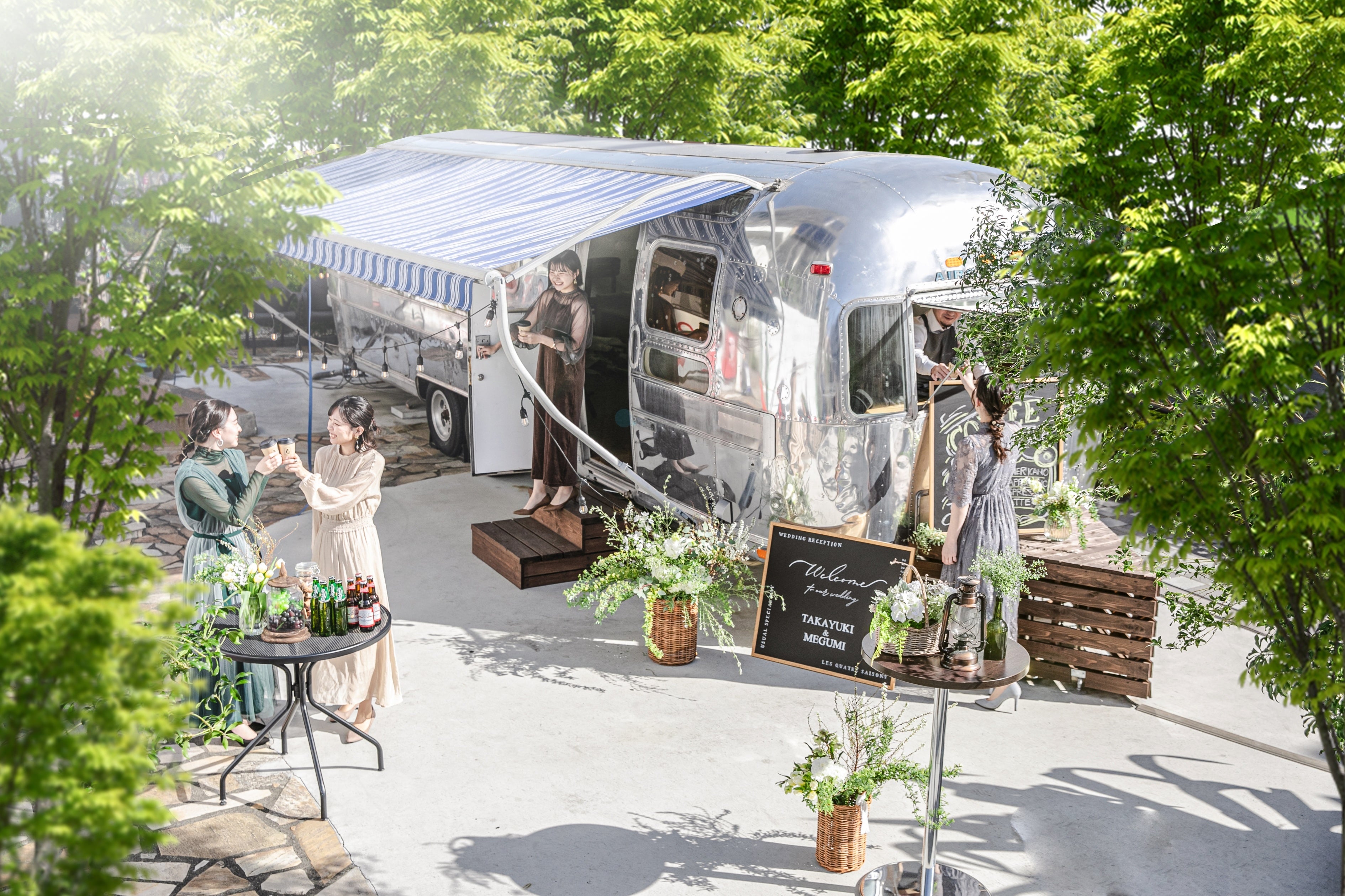 ・入口正面に設置のエアストリームで外の風を感じながらビールを楽しむも良し!
