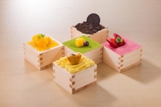 木の升入りのティラミス。本格マスカルポーネチーズを使ったクリームがふんわりとして、優しい甘みがあり口当たりが柔らかな一品です。