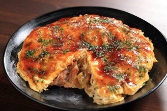 「粉もんフェスティバル in ニューヨーク」にて優勝経験がある「ちんちくりん」。麺づくりを始めて70年の歴史がある「なか川製麺」を使用したお好み焼き。