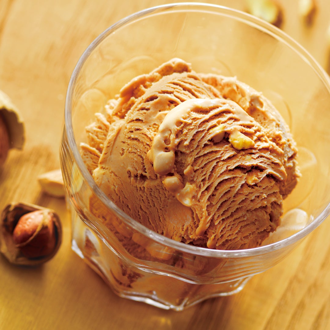ヘーゼルナッツとアーモンドのペーストをチョコレートと合わせた「ジャンドゥーヤ」。その風味豊かなおいしさをアイスクリームに。砕いたヘーゼルナッツが香ばしいアクセントです。