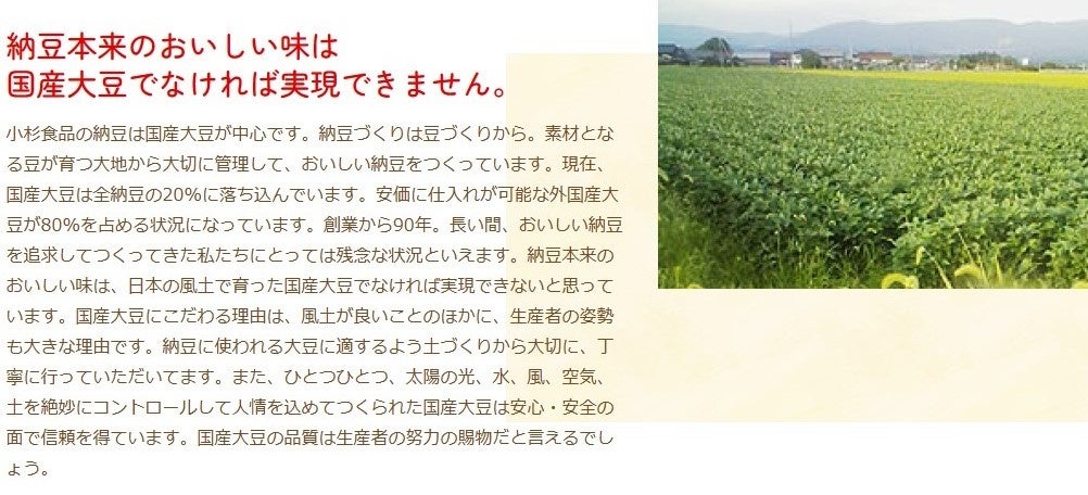 小杉食品は創業90年、皆様に喜ばれる納豆をお届けすることに専念しております。