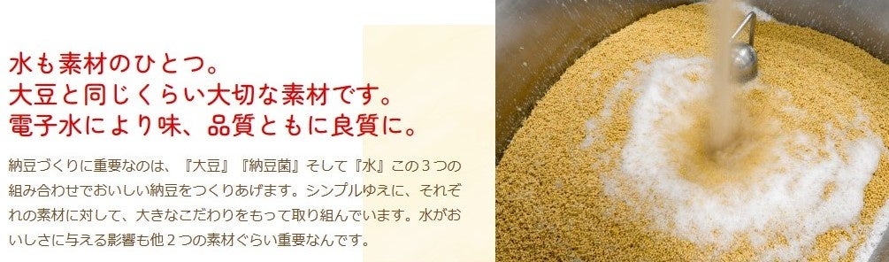 「水」「豆」「品質&安全・安心」にこだわりおいしい納豆づくりを追求しています。