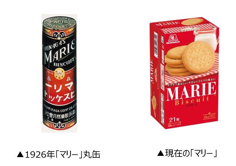 1923年発売。森永製菓が国内向けに初めて発売した16種類のビスケットの一つとして「マリー」は誕生しました。特長ある赤いパッケージは、1961年から登場し、森永ビスケットの中心的な存在として、