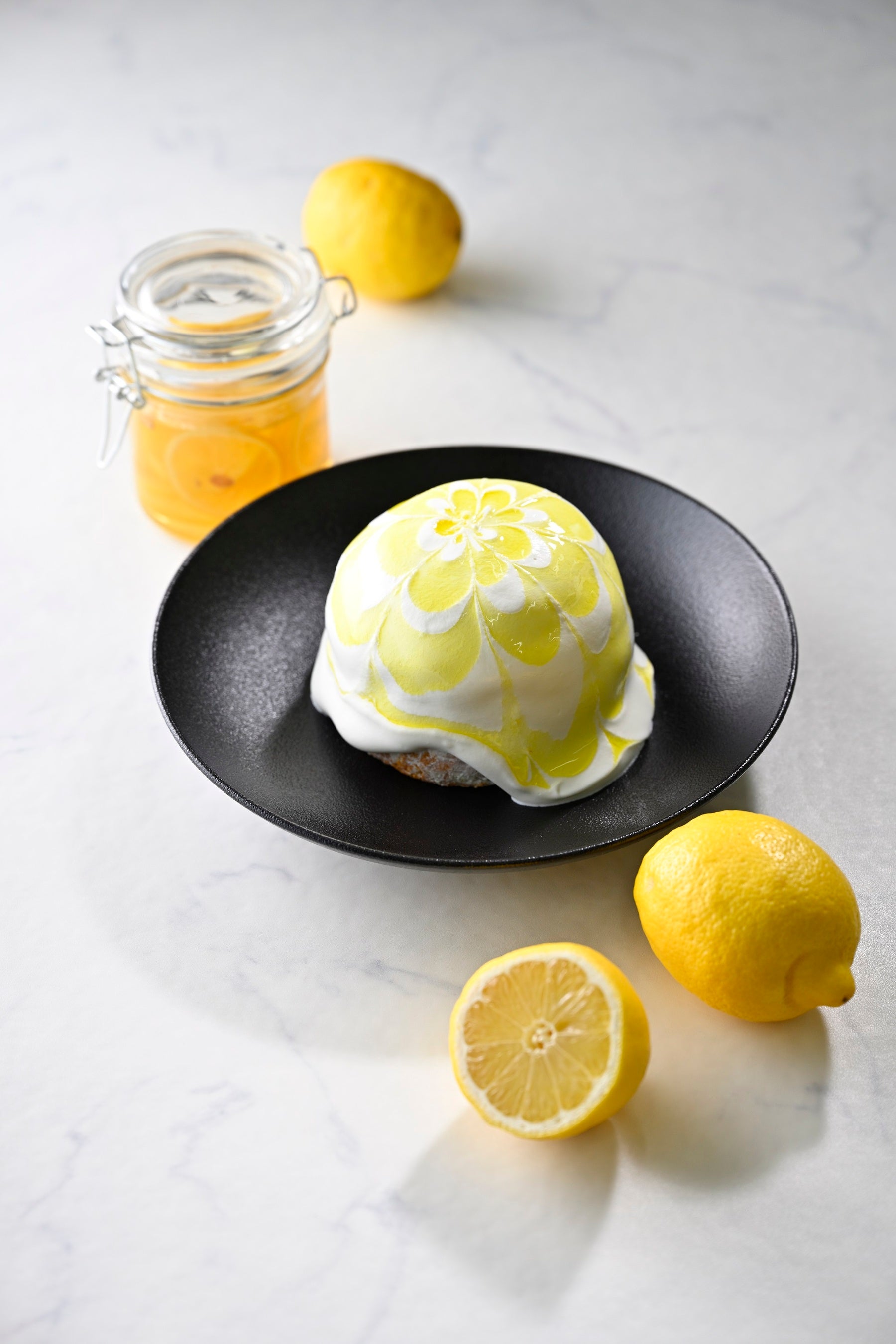 中心に瀬戸内レモンソルベを閉じ込め、ふんわりとした食感はそのままにひんやりとしたパンケーキに仕上げました。