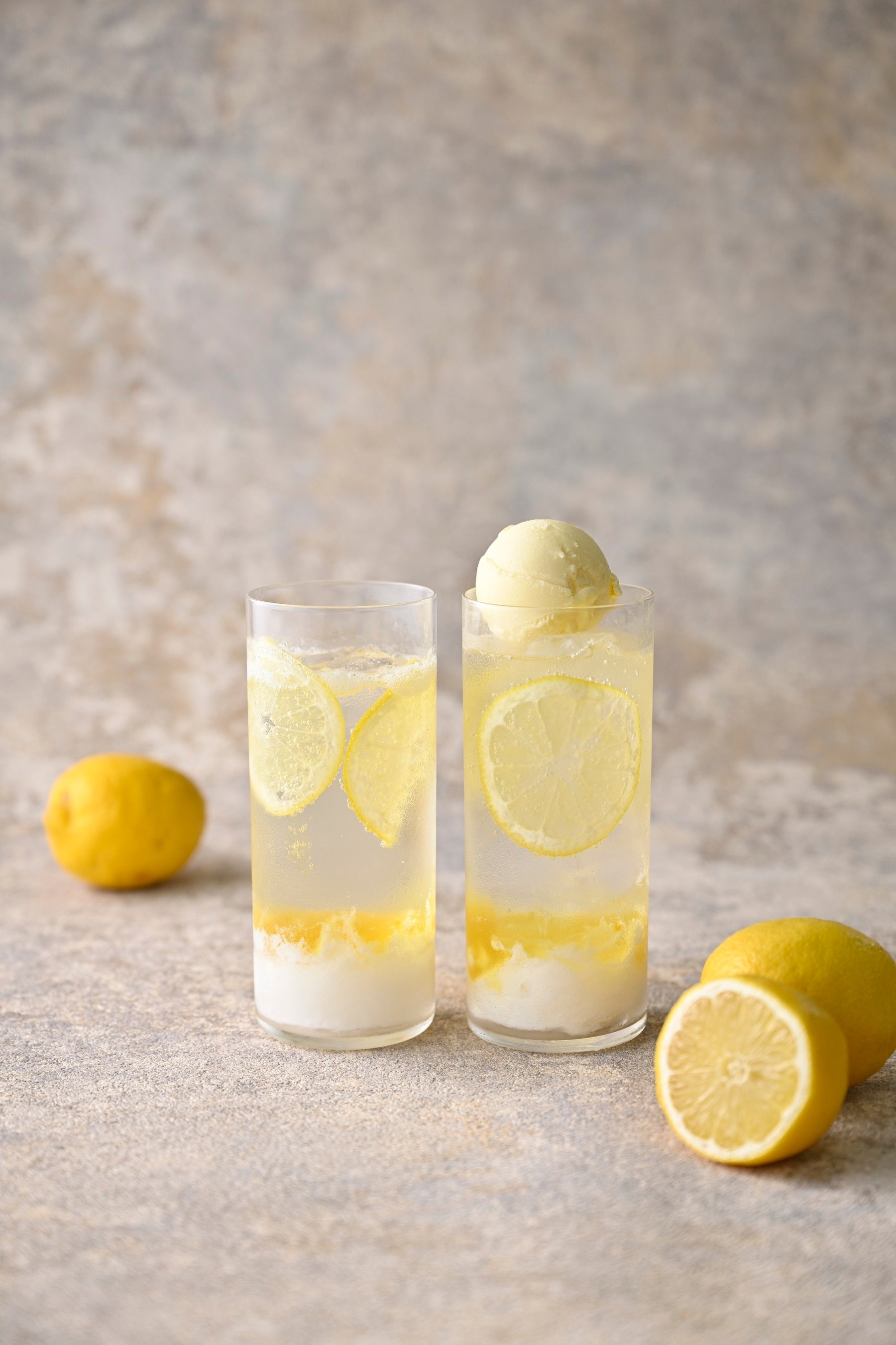 レモンソルベと、はちみつが香るレモンコンポートを合わせた、ひんやり爽やかなソーダ。