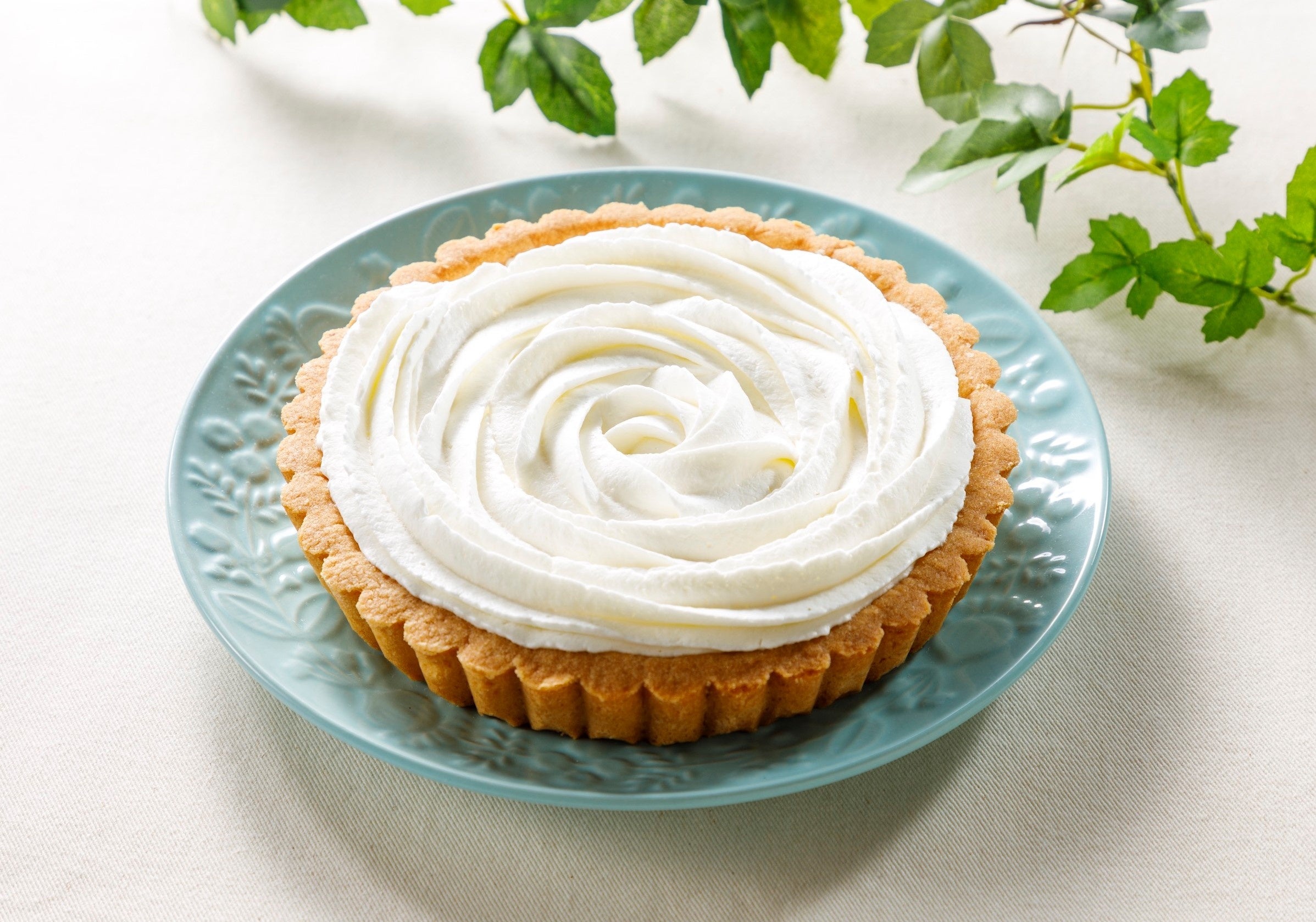 タルト生地と、北海道クリームチーズを使用したベイクチーズケーキを一緒に焼き上げ、その上に北海道生クリームを使用したコクのあるホイップをたっぷりと絞っています。