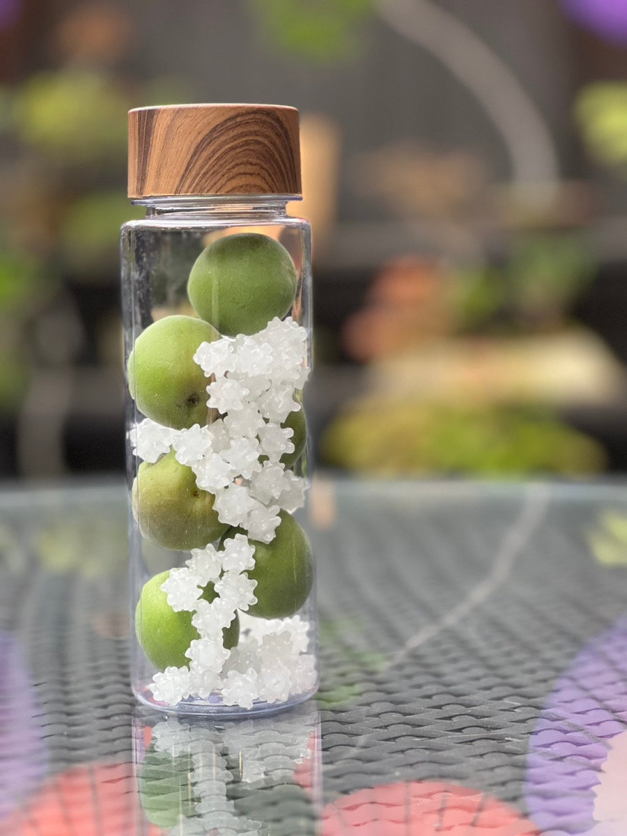 米糀を使った発酵梅シロップづくり。麹菌の酵素の作用によって、梅の実が柔らかくなり、梅の実のおいしさを余すことなく抽出することができます。