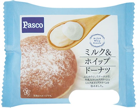 ふんわりとした食感のドーナツで牛乳入りミルククリームを包み、軽い口どけのミルクホイップクリームを注入し、粉糖をかけました。