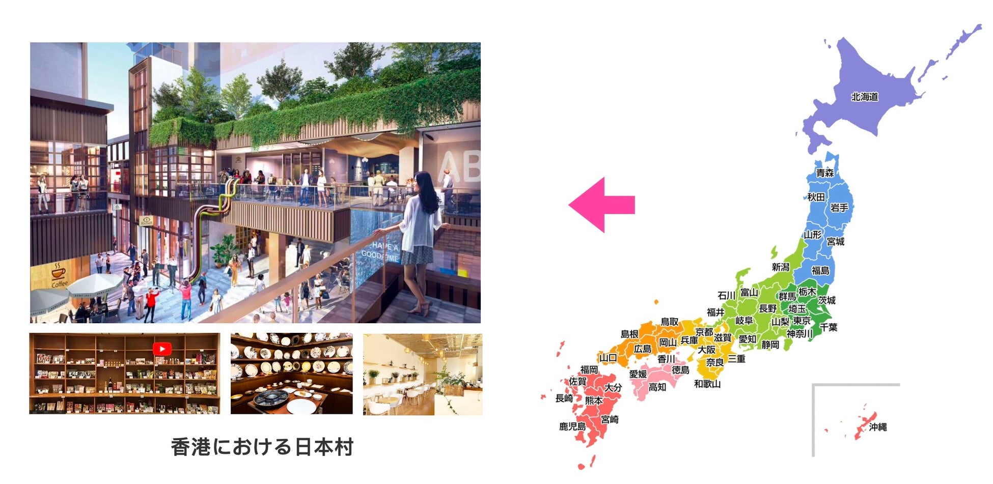 日本各地のメーカー品や生産者の商品を1箇所に集めた香港現地のアンテナショップとして「日本ー條街(Japan City)」も計画しております。