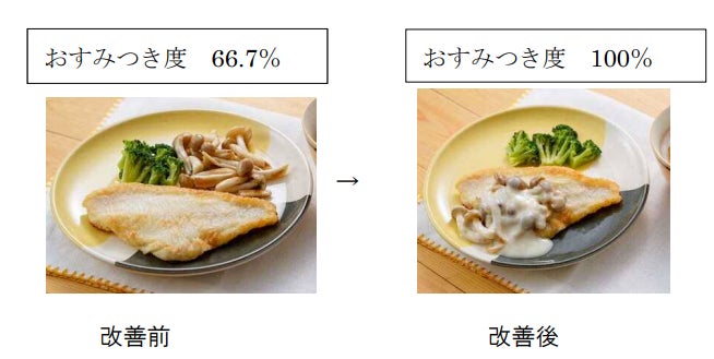 →白身魚とマッチするホワイトソースを使用。ホワイトソースの中にキノコを入れ食べやすく。