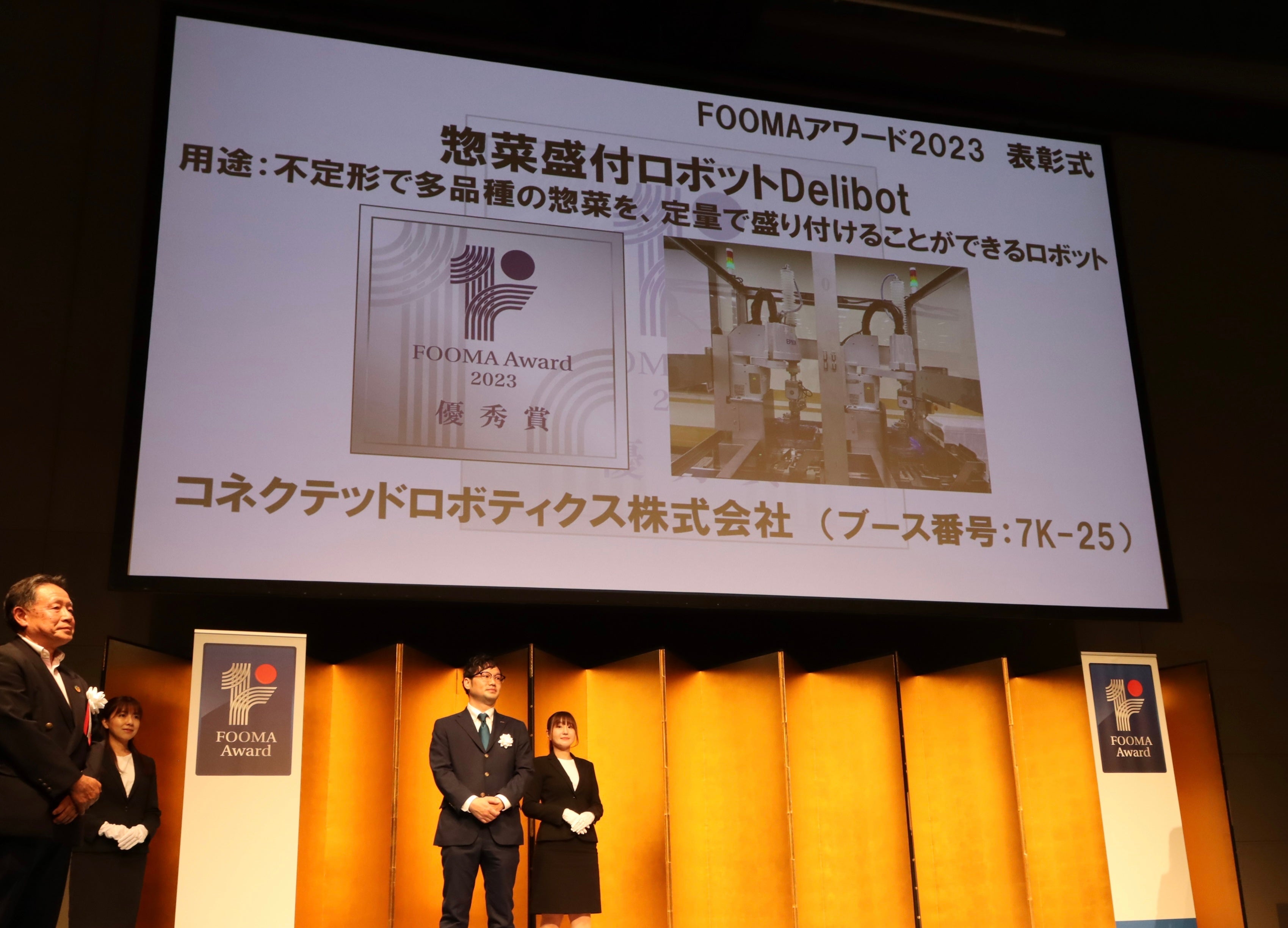 食産業向けロボットサービスの研究開発および販売を行うスタートアップのコネクテッドロボティクス株式会社(本社:東京都小金井市、代表取締役:沢登哲也 以下CR)が開発した惣菜盛付ロボットシステム「Delibot」が、第2回 FOOMAアワード2023にて優秀賞を受賞しました。
