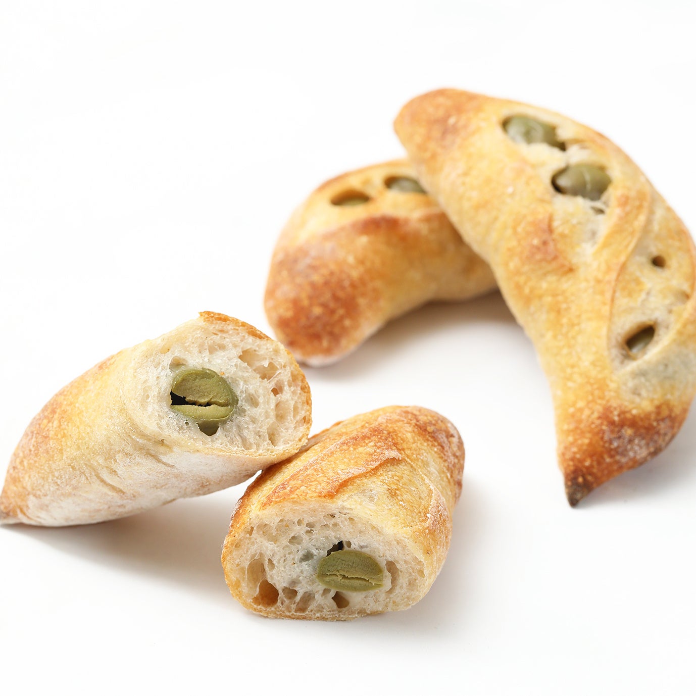 ライ麦粉入りのほのかな酸味のあるバゲット生地と、グリーンオリーブの相性が良いハード系パンです。シンプルにオリーブの渋みや塩気をお楽しみいただくことができ、お酒との相性も抜群。ビールやワインのペアリングとして、おつまみ感覚でお召し上がりいただけます。