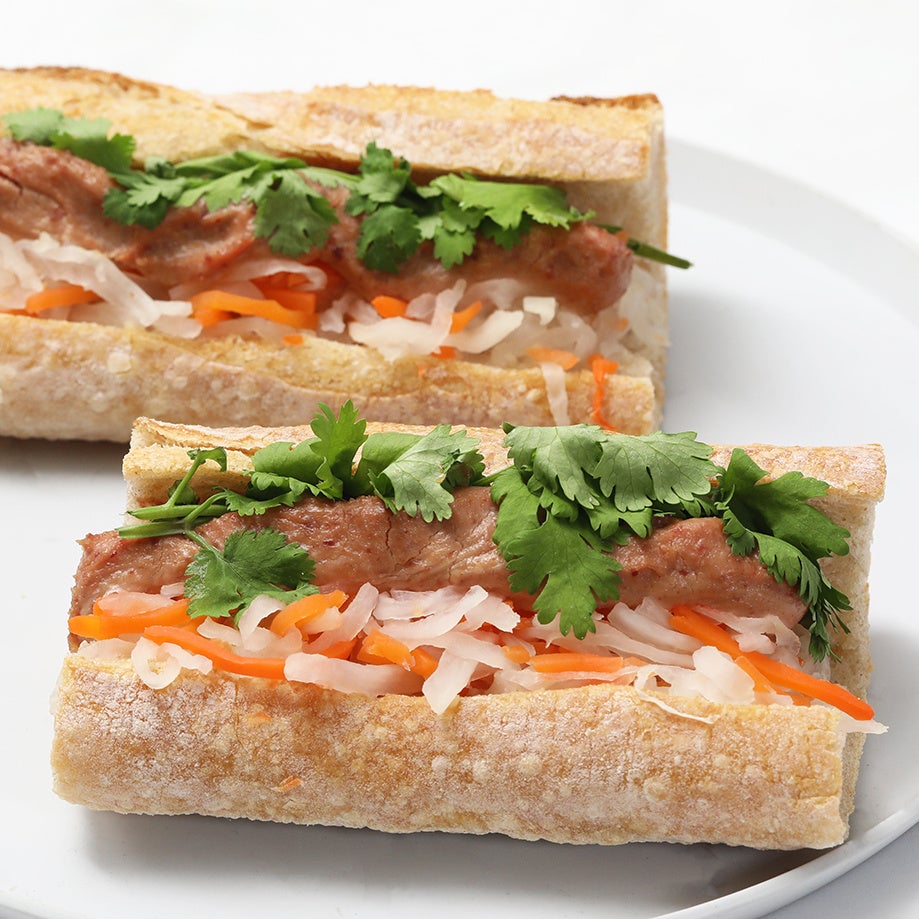 ベトナムのサンドイッチ”バインミー”がバゲットラビットでもお楽しみいただけます。バゲットにレバーペーストと大根人参のなますを合わせ、パクチーをトッピング。なますのシャキシャキ感と甘酸っぱさ、レバーペーストのコクとまろやかさで飽きのこない味わいに。さらに、ヌクマムを加えてエスニックな風味に仕上げました。具沢山のバインミーをお楽しみください。
