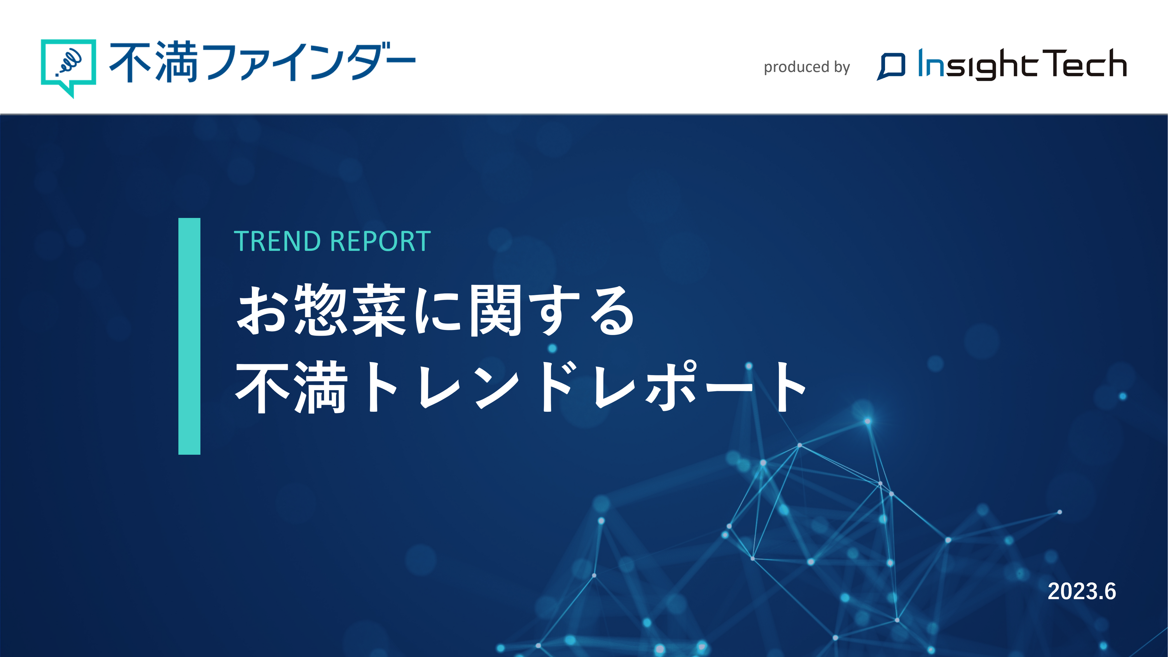 株式会社 Insight Tech(東京都新宿区、代表:伊藤友博、以下 Insight Tech)は、同社が運営する『不満買取センター』に寄せられたお惣菜に関する不満を『不満ファインダー』を用いて解析・考察したレポートを公開しました。