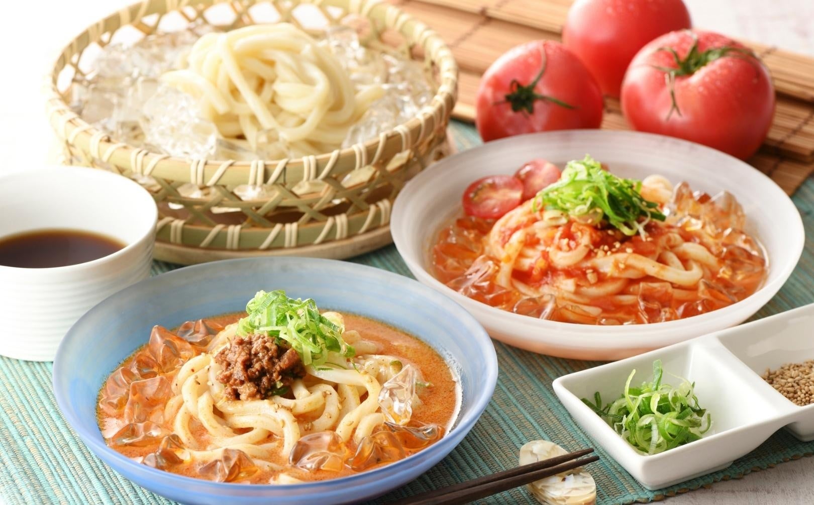 うどんコーナーでは、トマトの酸味と甘みを感じるさわやかな『トマトつゆ』と、山椒ラー油の辛味とゴマダレのコクが癖になる『麻辣胡麻つゆ』の2つの冷たい「つゆ」が登場!もちろん、うどんだけでなく、ラーメンのつけだれにしたり…色々なアレンジもお楽しみいただけます。