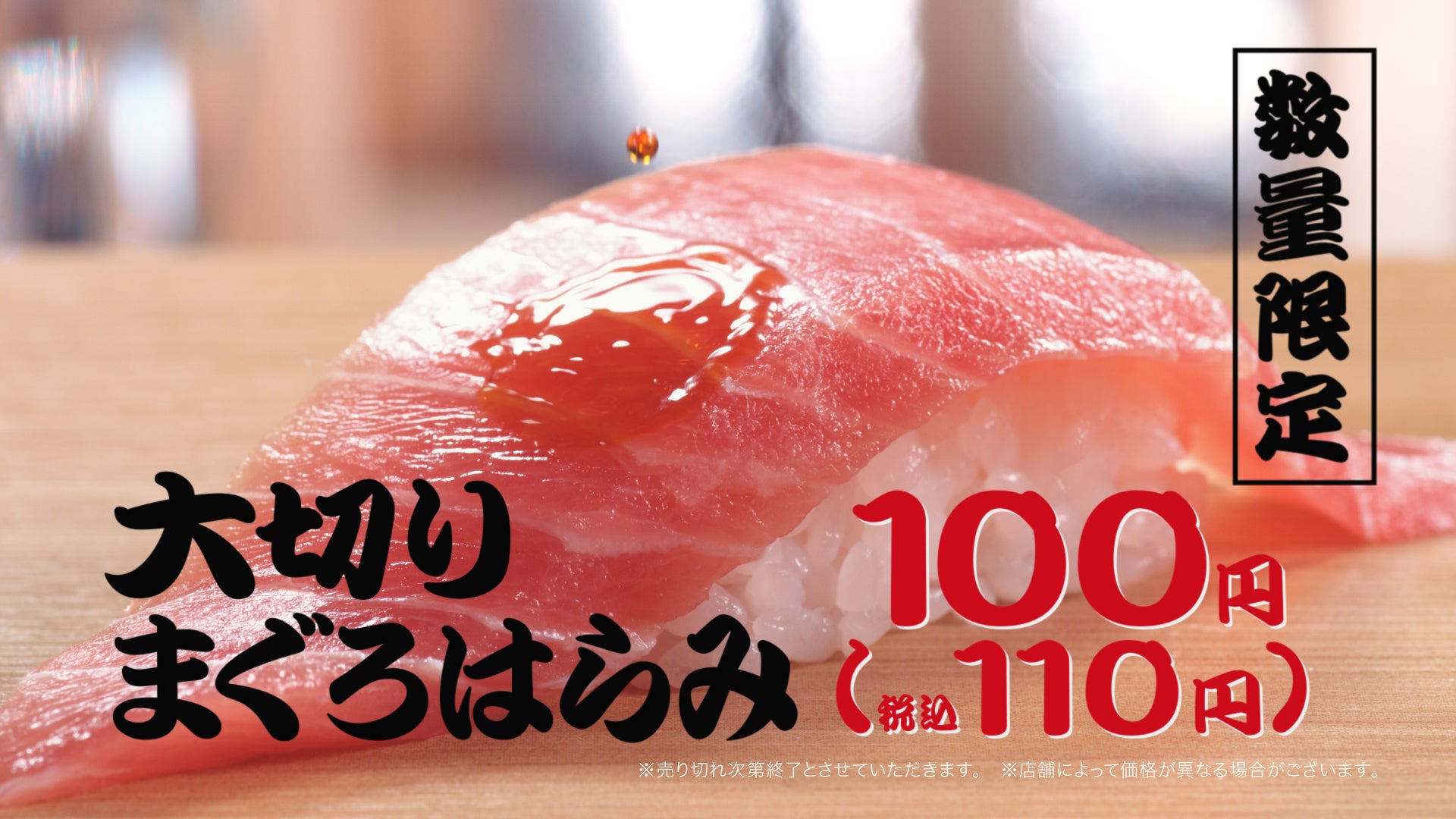 商品詳細:「大切りまぐろはらみ」や高鮮度のさばを酢〆することで旨みを引き出した「宮城県産大切り金華しめさば」などを100円(税込110円)のお手頃価格で販売します。