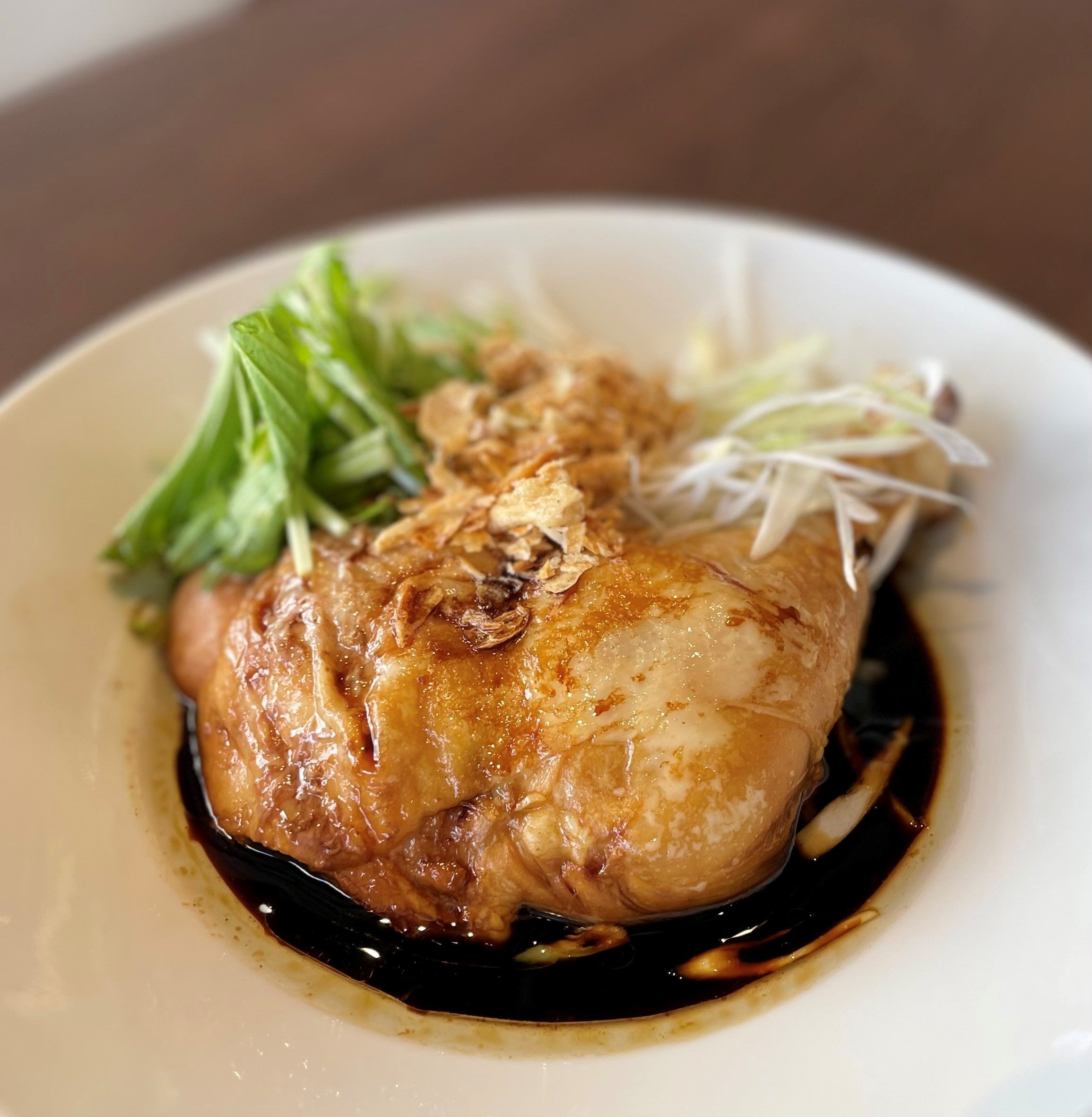 〇蒸し鶏の葱油醤油(写真は2人前)