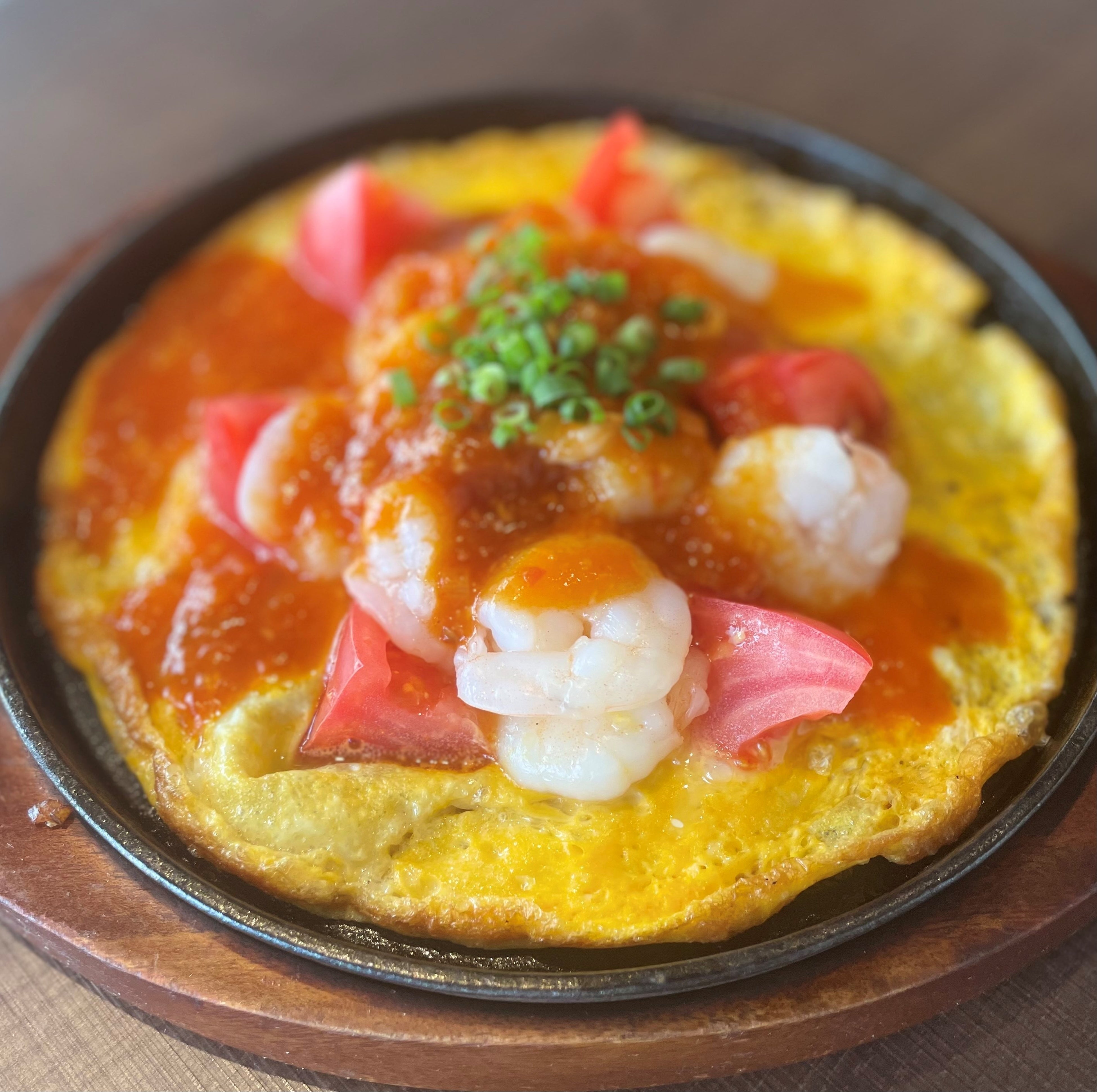 〇エビ玉トマトチリソース(写真は2人前)