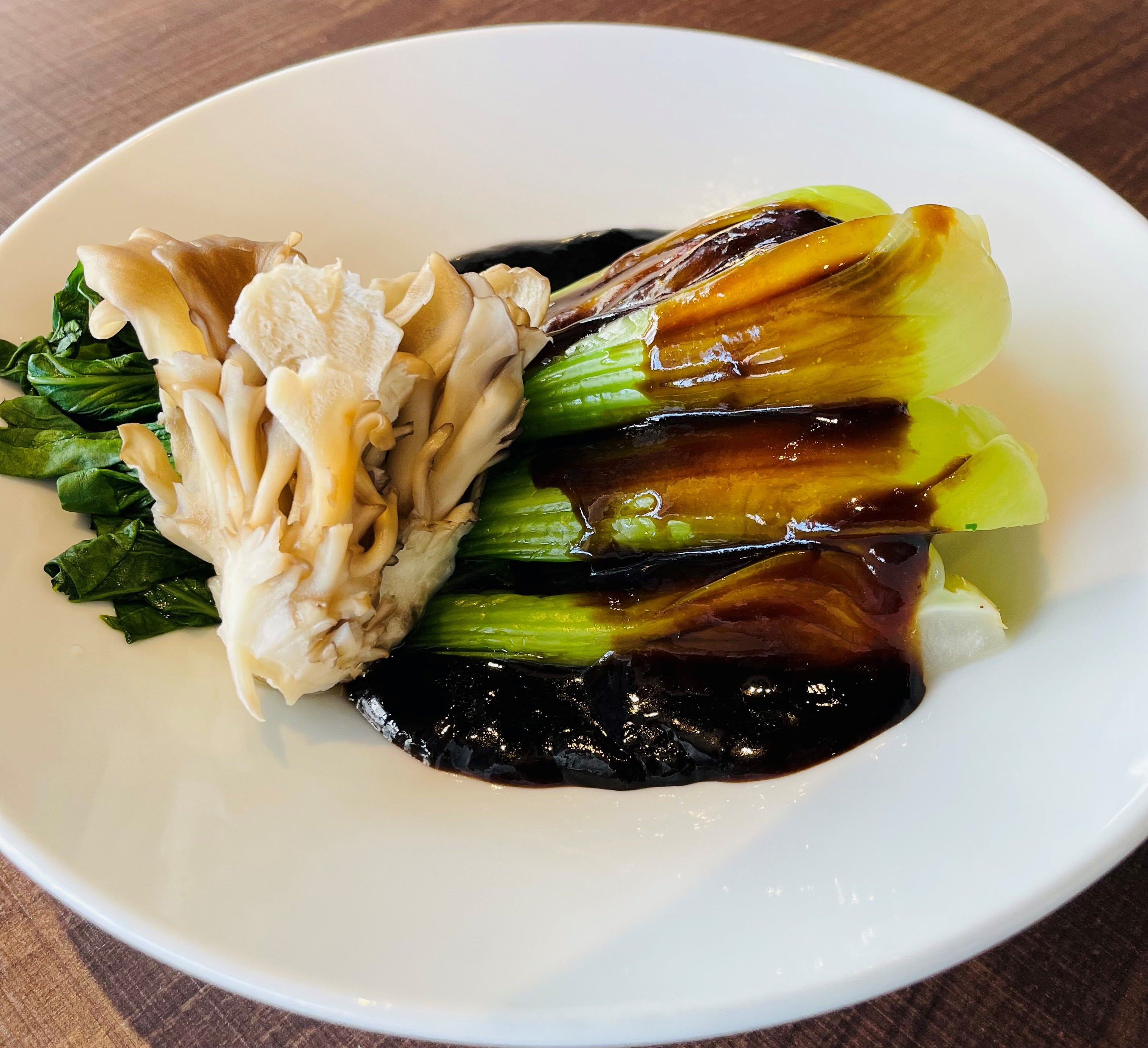 〇チンゲン菜とマイタケのオイスターソース(写真は2人前)
