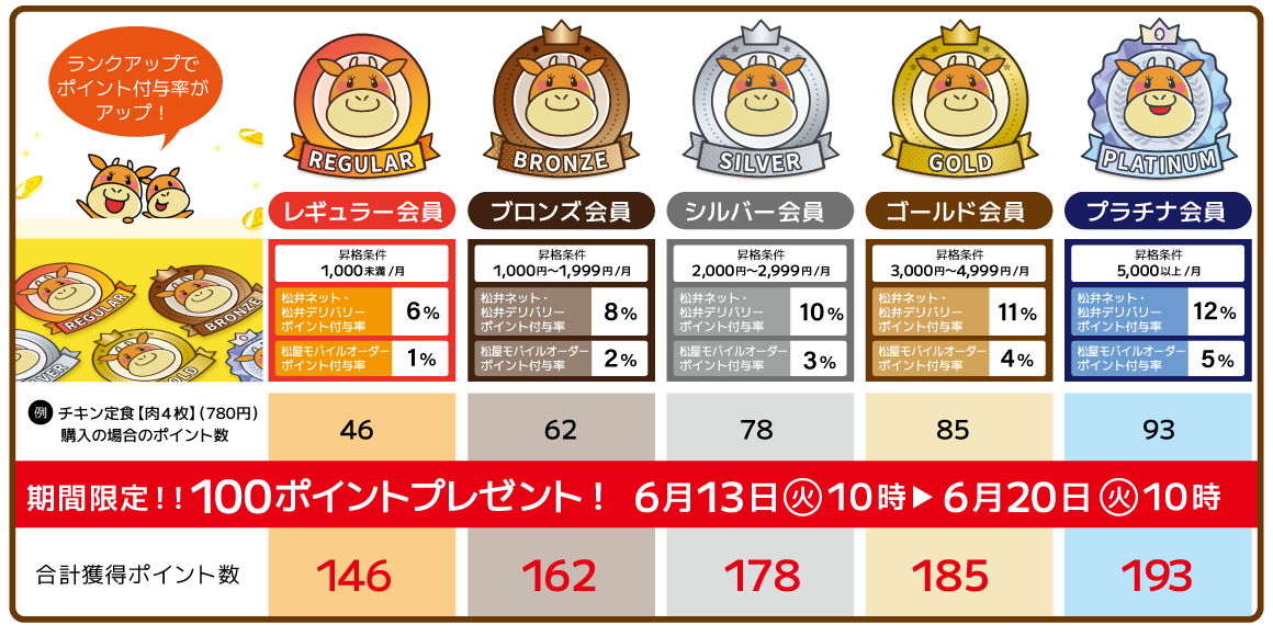 ※松屋モバイルオーダーは「100ポイントプレゼント」対象外です。