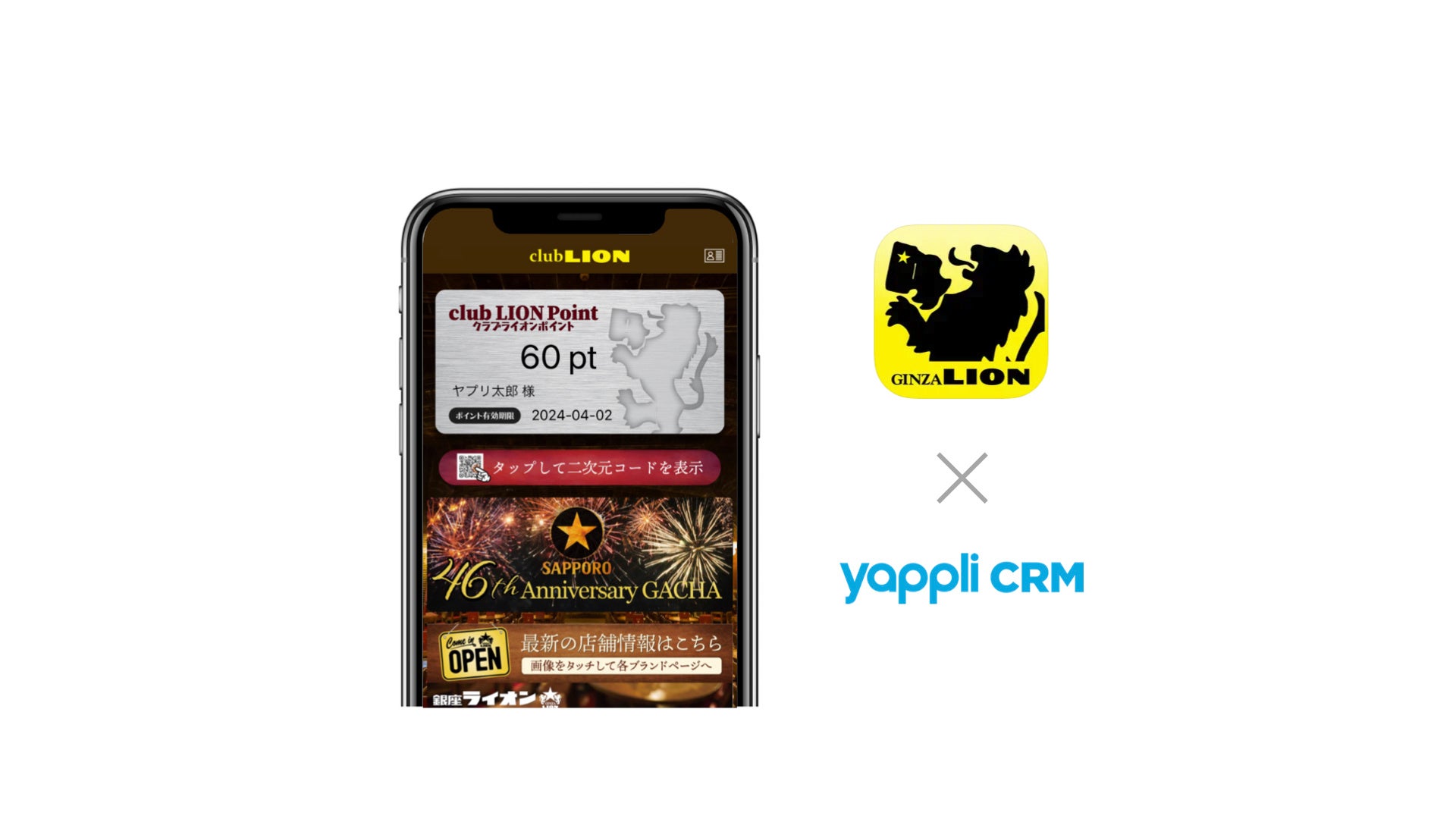 「club LIONアプリ」はYappl CRMを活用し、「ポイントカード機能」・「プッシュ通知によるクーポン配布」といったスタンダードなアプリの機能提供に加え、ユーザーとのコミュニケーションを活性化する「ユーザー参加型施策」をアプリを通して実行。「来店毎にポイントが貯まるだけでなく、ビール好きユーザーに喜んでいただけるアプリ」を意識し、アプリを起点とした顧客とのコミュニケーションを充実させています。