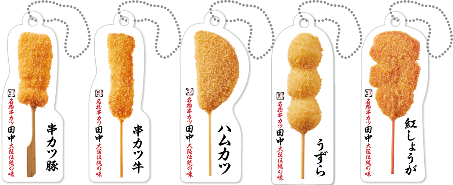 アクリルキーホルダーと同じ絵柄の串カツを1本プレゼント