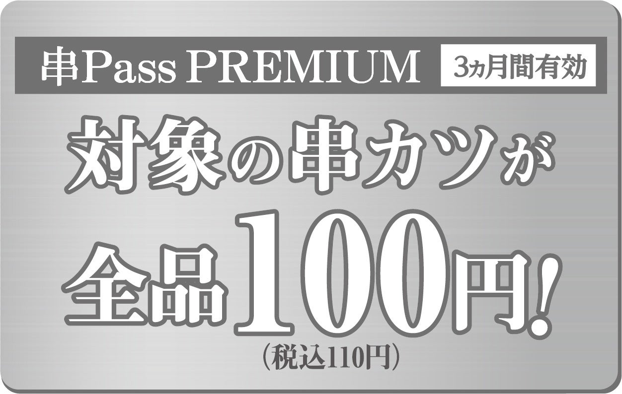 ご来店いただいたお客様へ感謝の気持ちを込め、期間中にチェックインしていただいたお客様全員を対象に、串カツが100円(税込110円)になる「串Pass PREMIUM」を抽選で1,000名様へプレゼントいたしします(※有効期間3ヵ月間)。