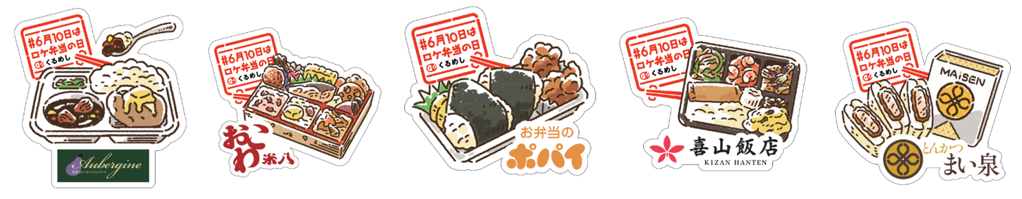 ロケ弁の代表格ともいえる人気店と協力して、ロケ弁をポップなイラストをデザインした、オリジナルステッカーを作成しました。対象店舗にて、店頭や商品納品時に数量限定でプレゼントする他、くるめし公式Twitterでステッカープレゼントキャンペーンを実施します。
