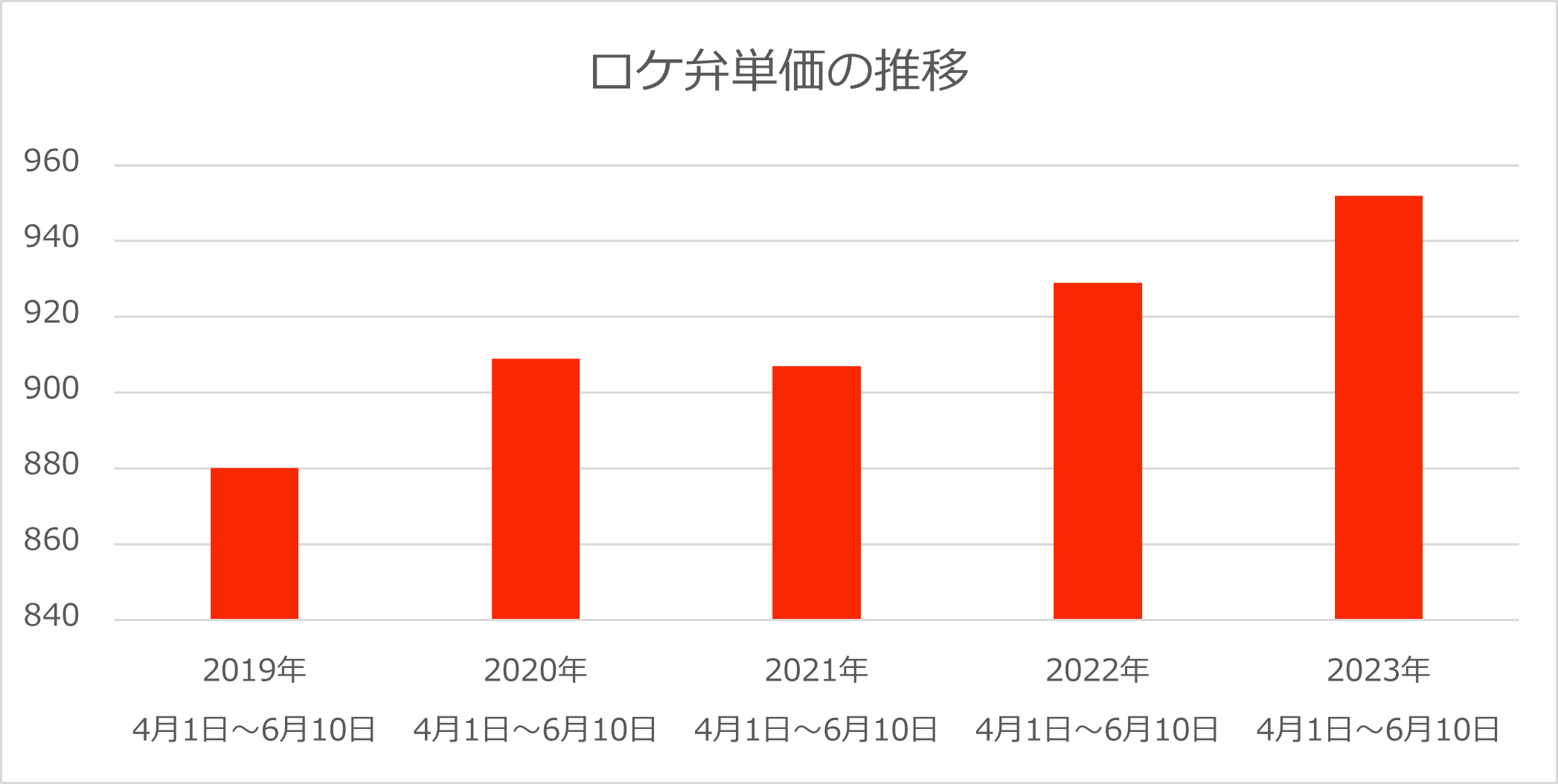 ロケ弁業界における最新の調査結果を発表します。4月1日から6月10日までの期間を対象に、2019年~2023年の状況を比較しました。