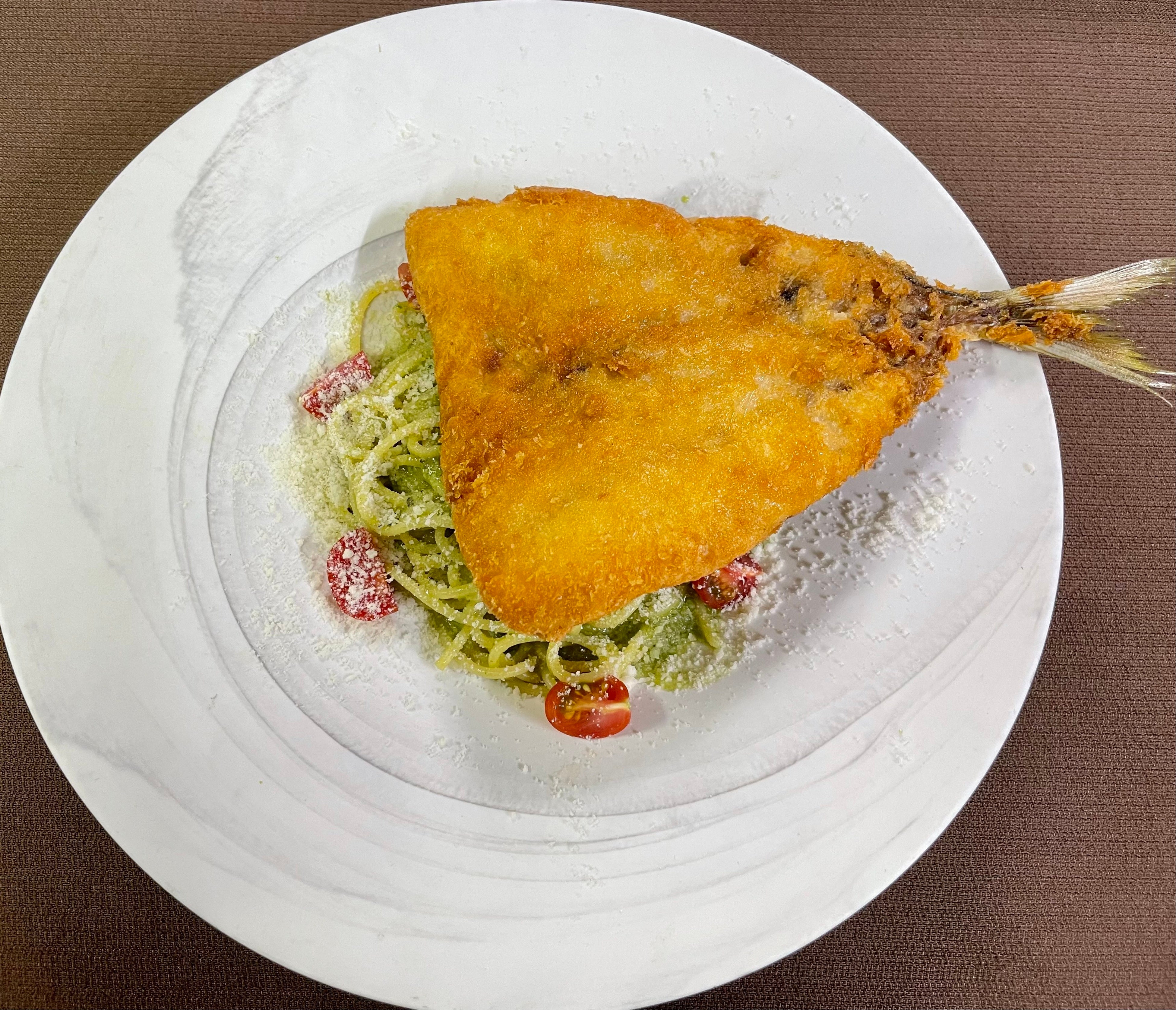 今回はバジルが沢山収穫できるので、ジェノベーゼソースと魚の相性が抜群なのを様々なお客様に知っていただきたくて【アジフライの載ったジェノベーゼ】の開発に至りました。