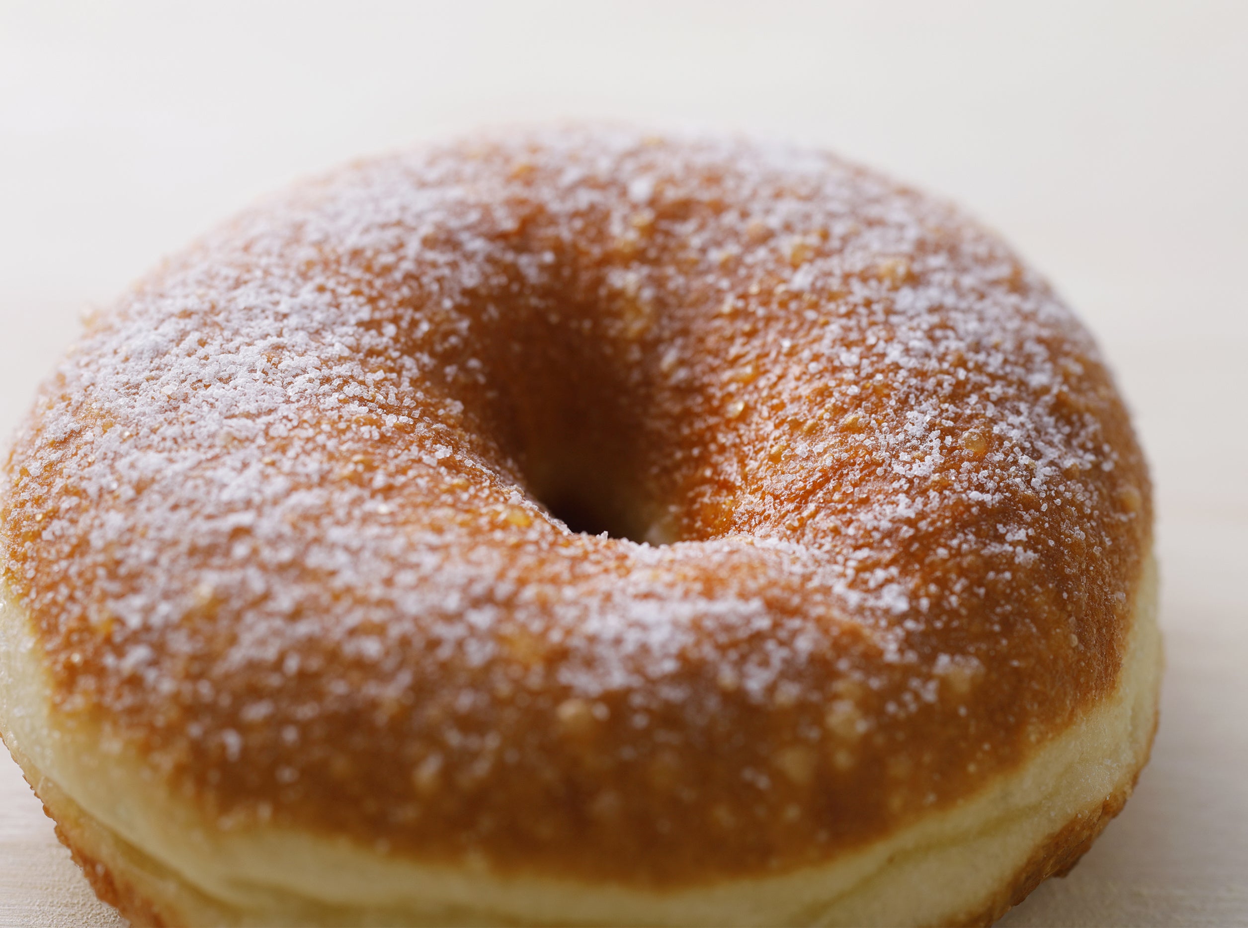 『もちべえ』…創業からの人気商品の顔が隠れるくらいの大きなリングあげパン。小麦の香りとまるでお餅のような弾力の生地で、ふんわり、もっちりとした食感に懐かしい味わいです。出来たてを味わってほしいから毎日お店で揚げています。