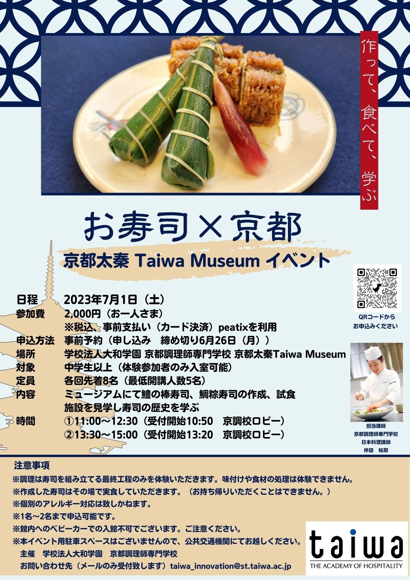 ※作成した寿司はその場で実食していただきます。(お持ち帰りいただくことはできません。)