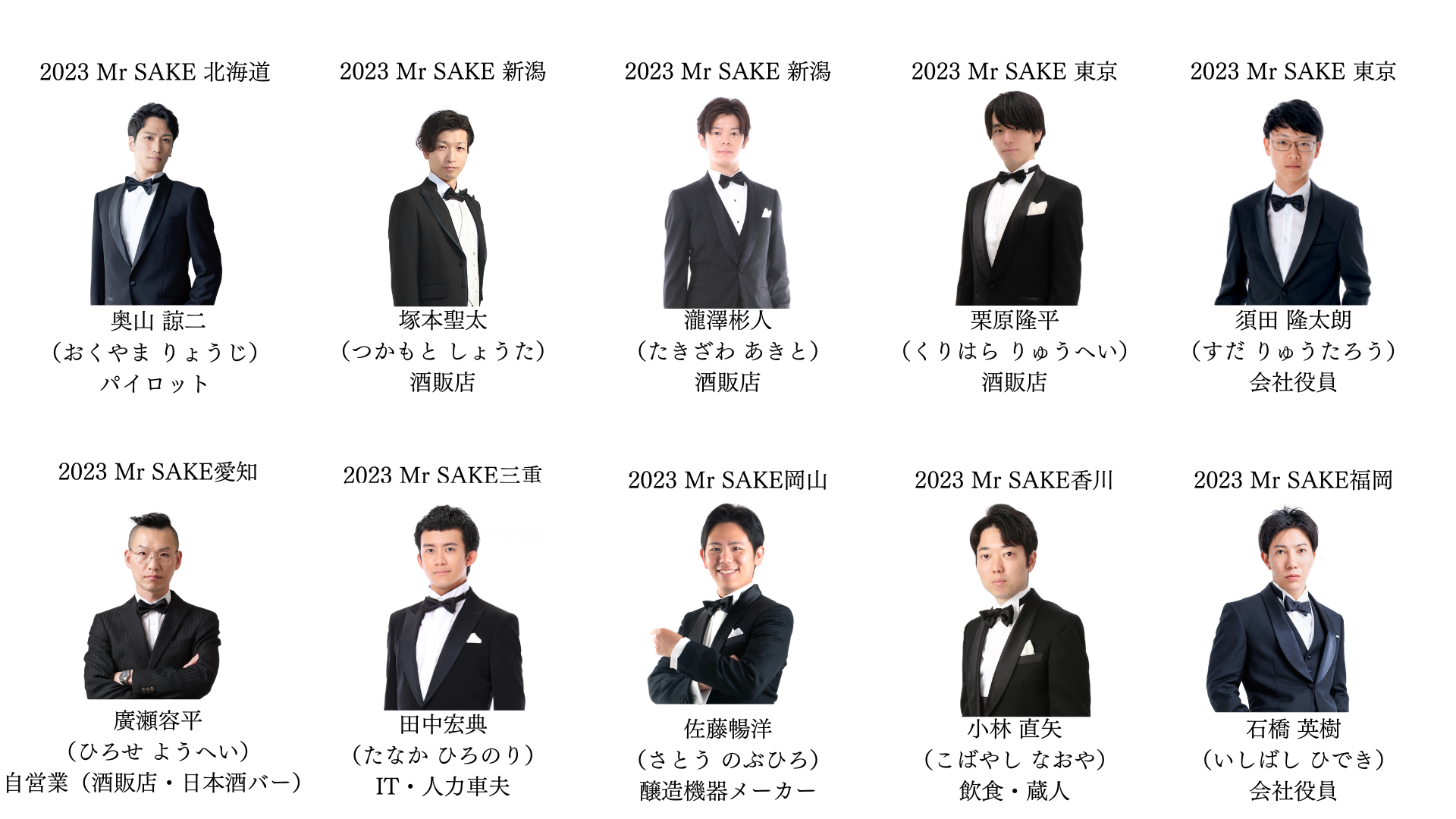 一般社団法人Miss SAKEでは伝統ある日本酒と日本文化の魅力を日本国内外に発信するアンバサダーとして、例年Miss SAKEを選出していますが、更なる発信や業界への貢献を目的とし、2023 Mr SAKE JAPANを選考します。それに先立ち、地方地区オーディションを経て選出された、各都道府県ファイナリスト10名です。
