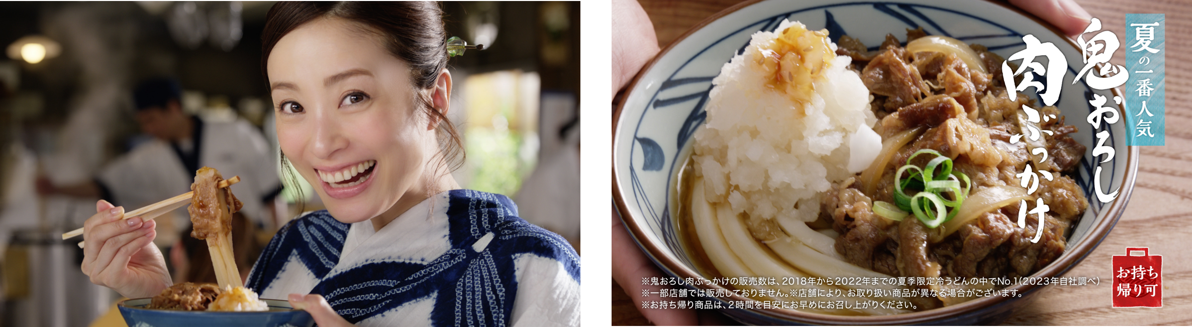 また、6月13日(火)からは新TVCM 丸亀製麺「のどごしつるん!鬼おろし肉ぶっかけ」篇を全国(一部の地域を除く)で放送開始いたします。