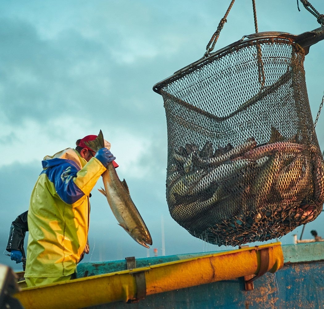 同様に全国的にも高い評価を得ている「標津のいくら」は、漁獲した鮭をすぐに氷が満たされた船倉で鮮度を保持します。港に着くとすぐに加工場に持ち込み、手切りで「すじこ」を取り出します。そして職人が手もみで一粒一粒ていねいにほぐし、標津の誇る、最高級の「いくら」になります。