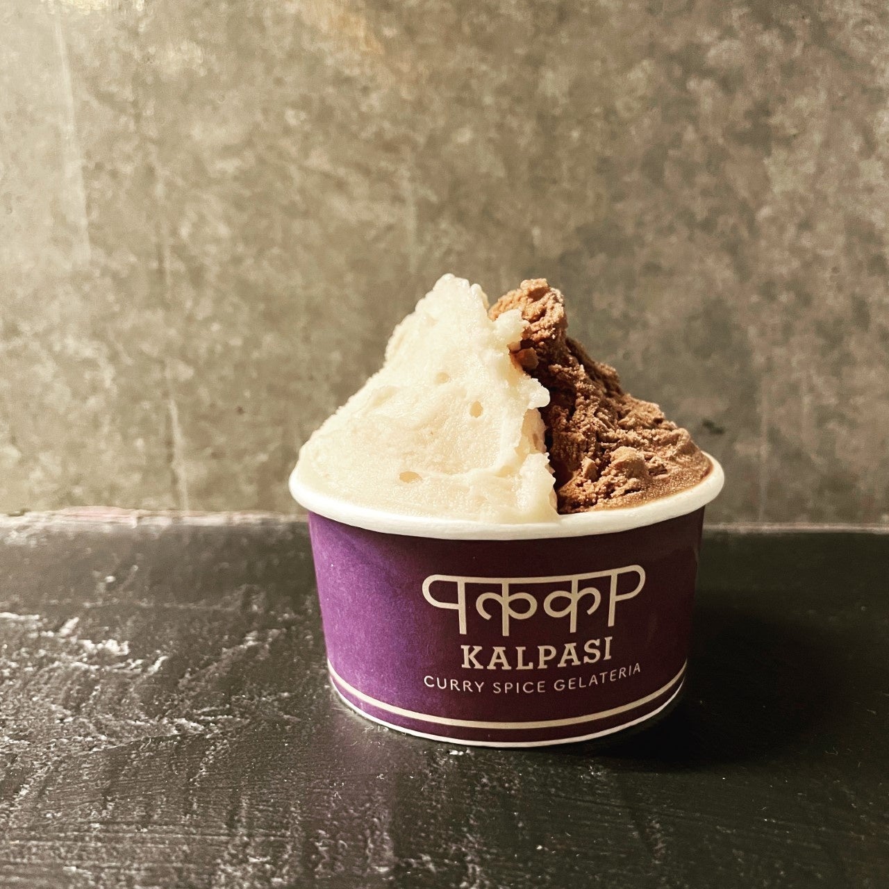 2020年に下北沢にオープンしたカレーとジェラートの専門店<Curry Spice Gelateria KALPASI(カリー スパイス ジェラテリア カルパシ)>。「焦がしマスタードシードココナッツ」「花椒ショコラーデ」「カルダモンマスカルポーネラッシー」「ピンクグレープフルーツティンブール(ネパール山椒)」「カレーパン風キャラメル」「八角ミルク」と、スパイス×食材のユニークな組み合わせにときめく6種類を提供。