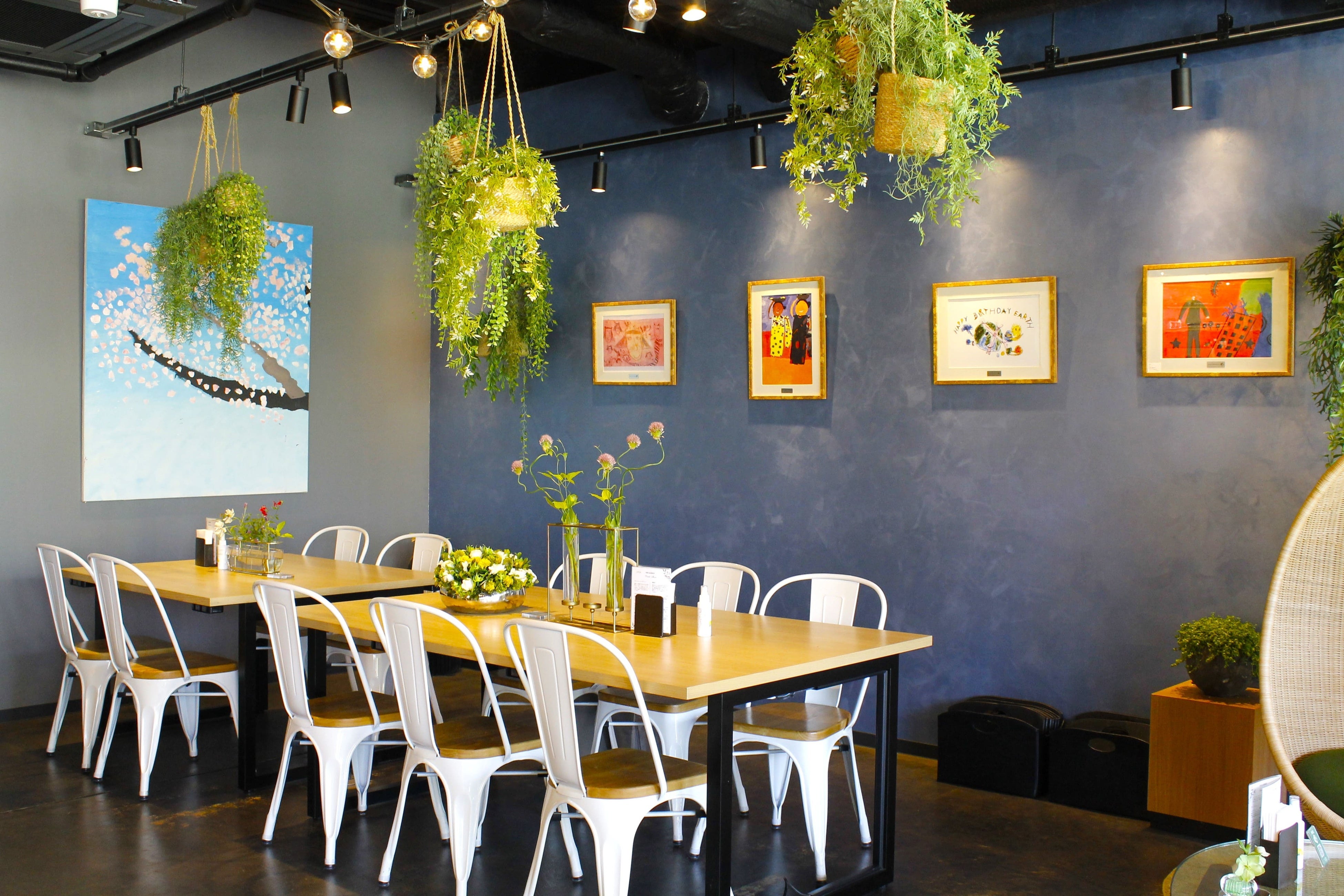 敷地の奥の方に入口があるため、ちょっとした隠れ家的なお店に見えますが、エントランスを入ると、こんな素敵なカフェ&バーがあることに驚かれるのだとか。