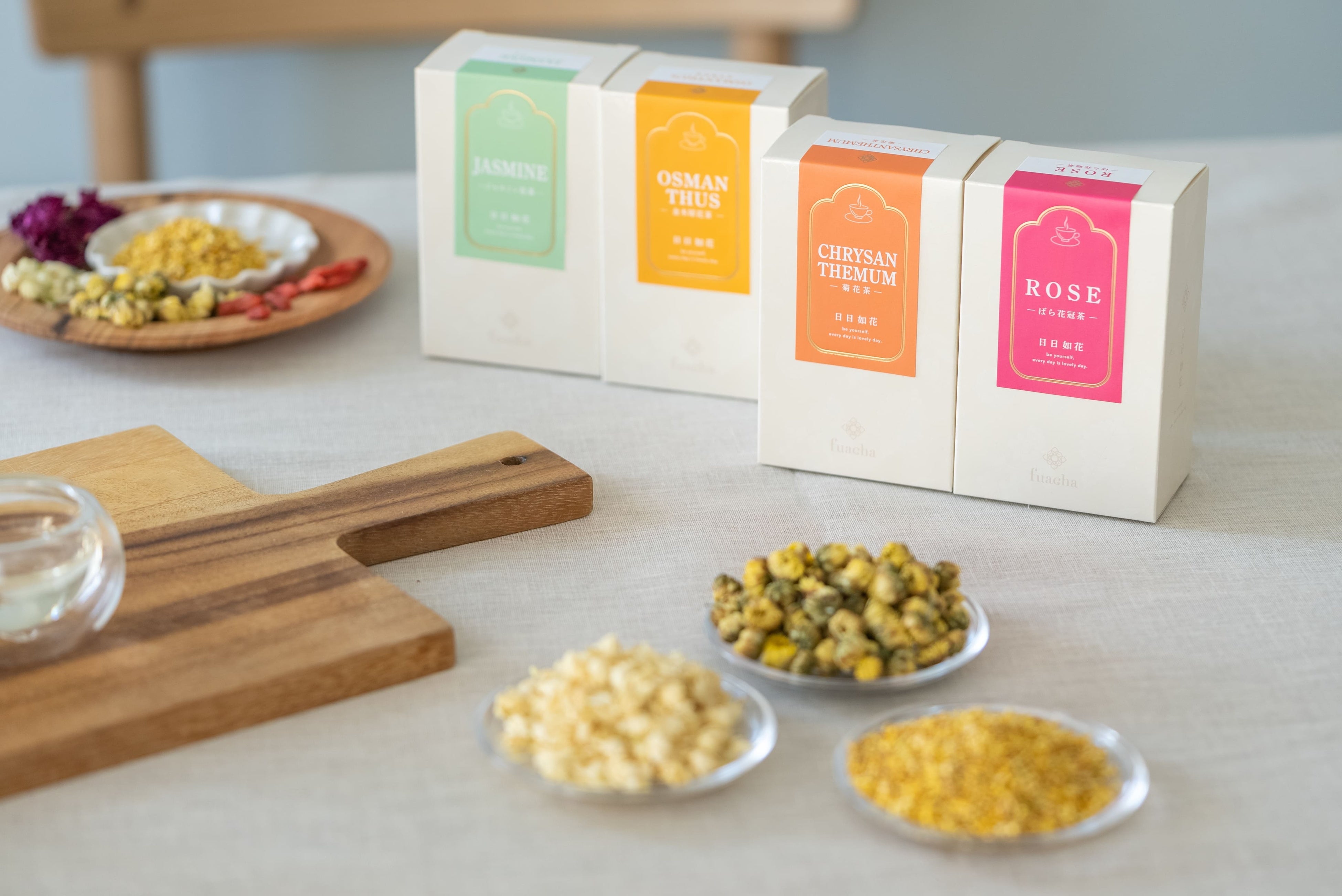 「デパート勤務時は物産展を担当していたので、良いと思ったものをセレクトして店に呼んでくる、という仕事をしてきました。ちょうど薬膳茶や中国茶を仕入れようと思っていたタイミングでfuachaの花茶に出あって品質の高さに驚き、さっそく提供を決めました。いわゆる一般的なばら茶は、香水のように香りが強いものが多い中、これは自然な優しい香りで、身体になじむ感じがしました。すでに当店でもお客様から大変好評いただいておりまして、金木犀が女性のお客様に人気があります。あと、菊花茶もお試しで飲んでいただくと『おいしい!』と、注文される方がほとんどです」