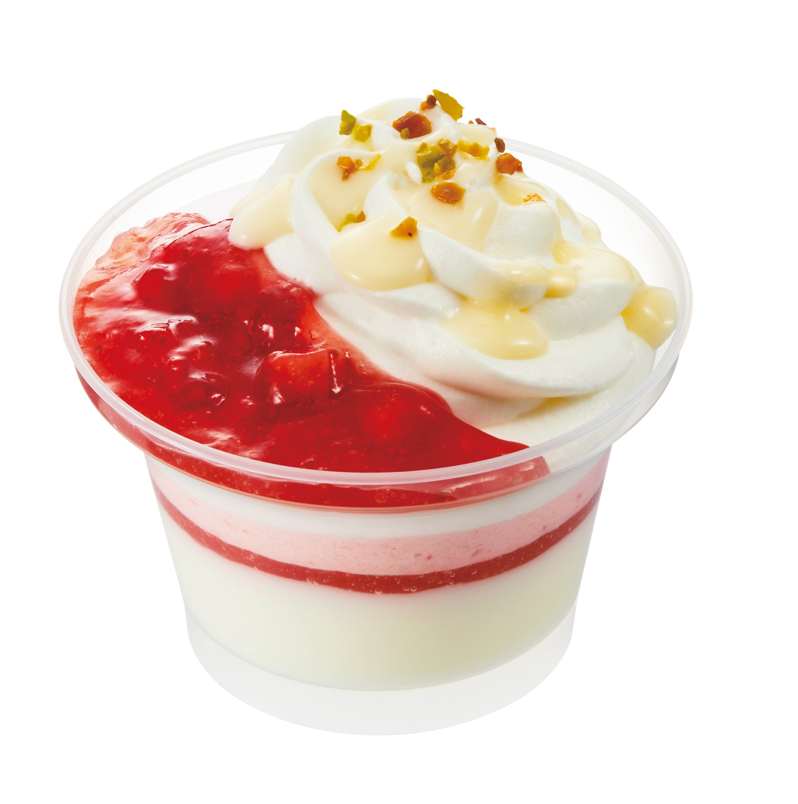 【内容】森永乳業の「森永ミルク加糖れん乳」を一番下層のれん乳プリンと、上からトッピングしたれん乳ソースに使用しています。いちごソース・いちごムースとれん乳を組み合わせた、甘酸っぱいおいしさが楽しめるパフェに仕立てました。甘党に捧ぐ!れん乳のあま~い味わいを堪能できるパフェです。