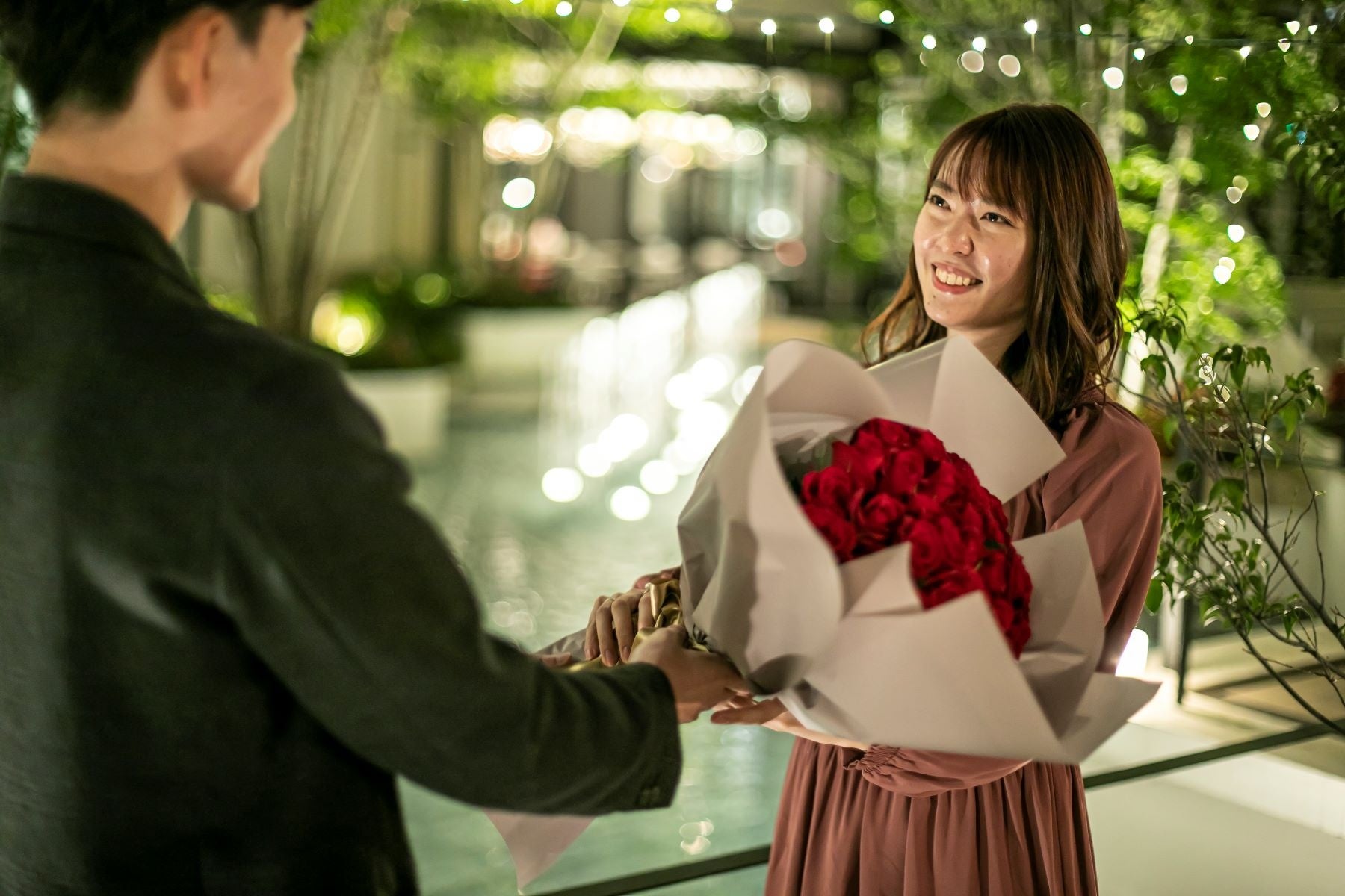 ②中庭「Cabana Garden」でプロポーズ ※雨天の場合、ホテル3階「マグノリアチャペル」にて