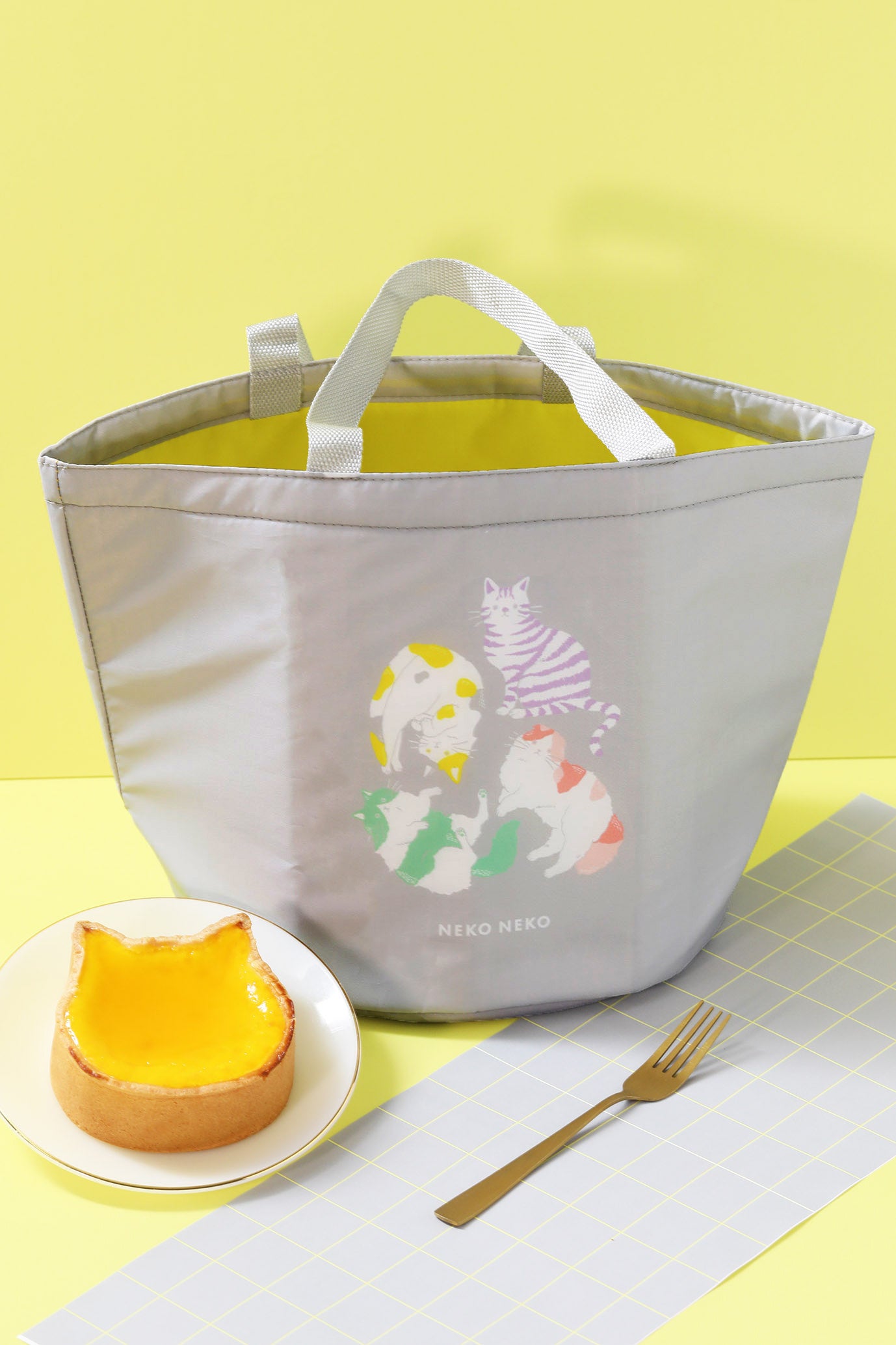「ねこねこ」ブランドで初登場の保冷バッグと『ねこねこチーズタルト』がセットになりました。ねこ好きのお客様からご要望をいただいた「ねこをいつも連れていたい」という想いにこたえるグッズとして、この夏大活躍の保冷バッグをご用意いたしました。カラフルないろんな柄のねこのイラストが愛らしいキュートな保冷バッグは、『ねこねこチーズタルト』もすっぽりと入る大きさ。保冷バッグは単品でもお買い求めいただけます。