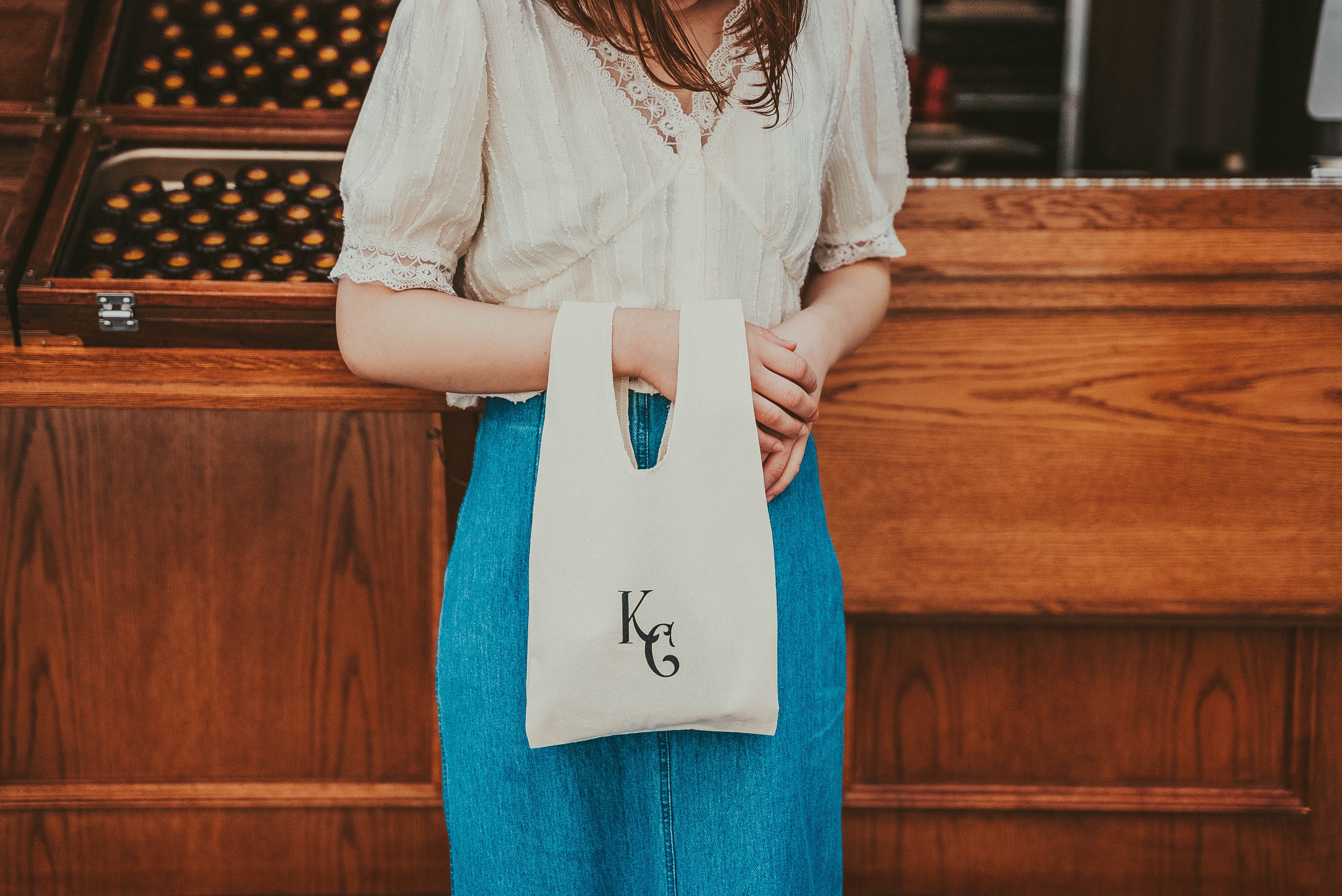 ちょっとしたプレゼントやお手土産に最適なコットンバッグ。6個入のカヌレが入るちょうど良いサイズ感が嬉しいオリジナルグッズです。