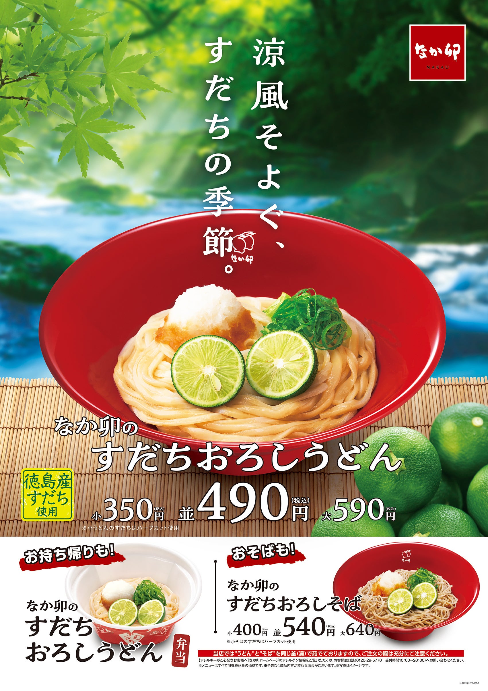 ぜひこの機会に、お近くのなか卯やご家庭で、暑い夏にぴったりな、さっぱりとした風味の「すだちおろしうどん」をお楽しみください。