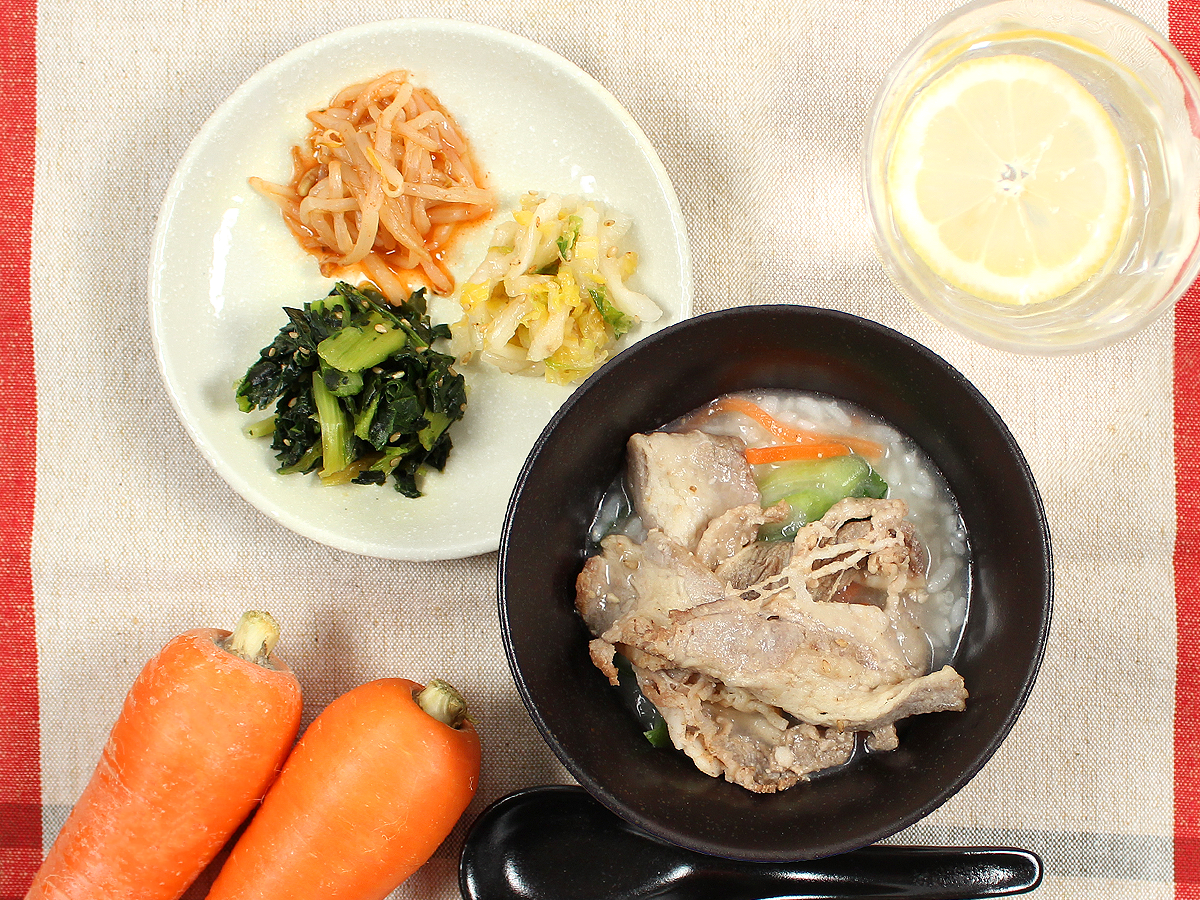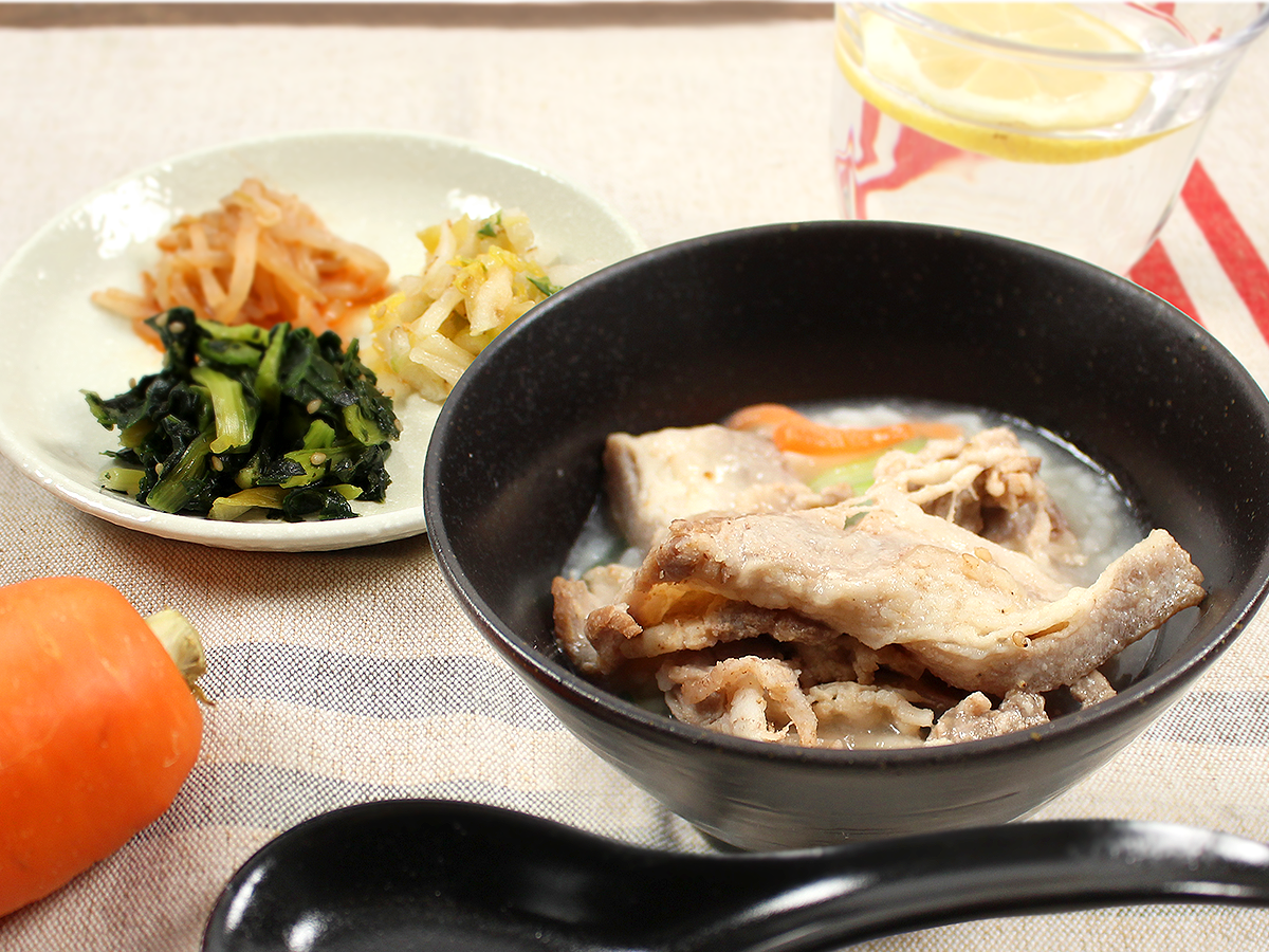 焼肉屋さんの定番料理の一つであるクッパは、韓国語で「スープごはん」を意味します。牛白湯を使用したコクと旨味がありながらもあっさりとしたスープを、うるち米にマンナンライスをブレンドしたごはんにかけました。具材には、牛バラ肉、大根、人参、青葱を使用しております。具材とごはん、スープをよく混ぜてお召し上がりください。