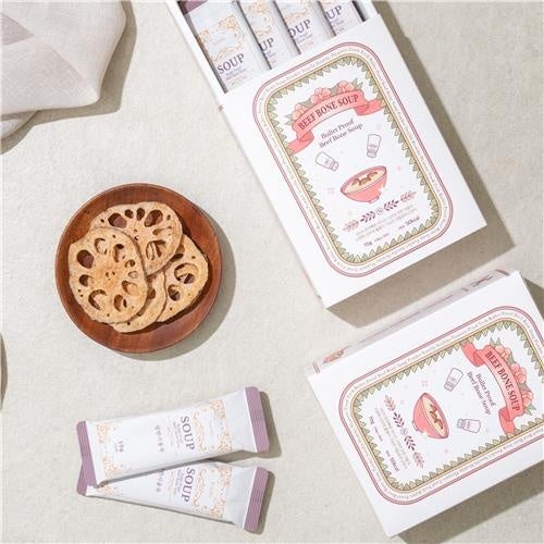 韓牛エキスと有機レンコン粉末のみを使用したバンタン牛骨スープは、低糖質でダイエットに効果的で、お湯を注いでかき混ぜるだけで簡単に素早く調理できる。