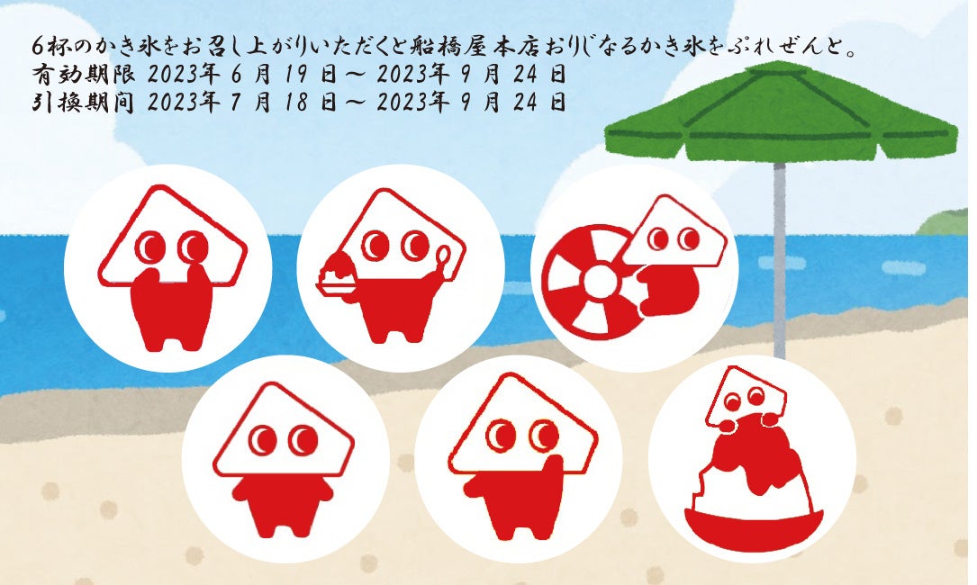 船橋屋亀戸天神前本店では、期間中かき氷をご注文のお客様にスタンプカードを配布いたします。お好みの味を6杯お召し上がりいただいてスタンプを集めると、メニューにはないシークレットかき氷をプレゼント!2種類のシークレットかき氷をご用意しておりますので、ぜひご友人やご家族とお越しくださいませ。
