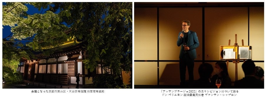 今回、歴史的価値のある天台宗青蓮院 将軍塚青龍殿で、ドン ペリニヨンと向き合う貴重な体験ができました。ドン ペリニヨン ロゼ ヴィンテージ 2009と成澤シェフのお料理を頂き、素晴らしい空間で特別な時間を感じることができました。7年前に美術番組で青蓮院のご住職さんと対談したことがあり、再びお会いできたことも大変嬉しく思っております。伝統や歴史だけではなく、革新、斬新さ、常に挑戦をする姿勢から、ドン ペリニヨンの持つ信頼と安心が生まれるのだと感じました。