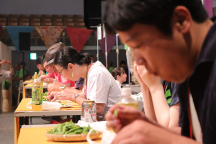 回を重ねるごとに参加希望者が増え続け、今年度の申込みは過去最高の申込数となった世界えだまめ早食い選手権。